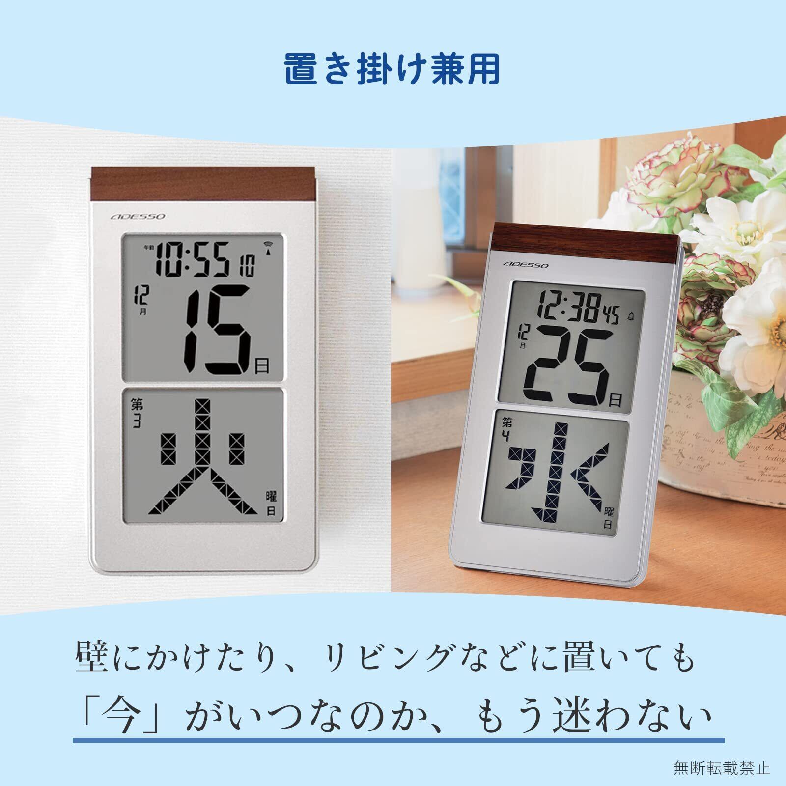 ADESSO(アデッソ) 日めくり電波時計 デジタル 置き掛け兼用 メガ曜日 日付表示 シルバー HM-301