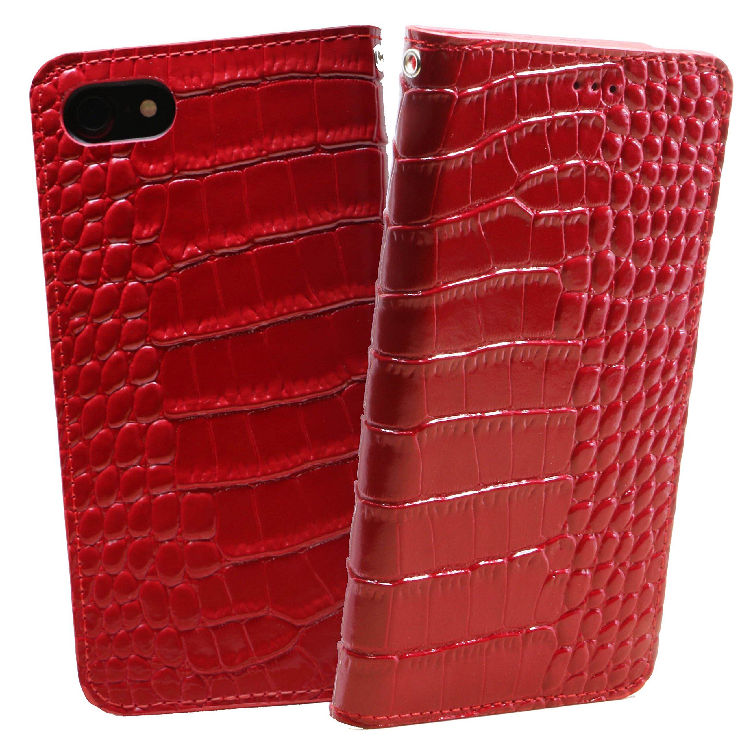 ReZuell. スマホケース クロコダイル 牛革 手帳型 レザー ケース iphone7/8 SE2 レッド
