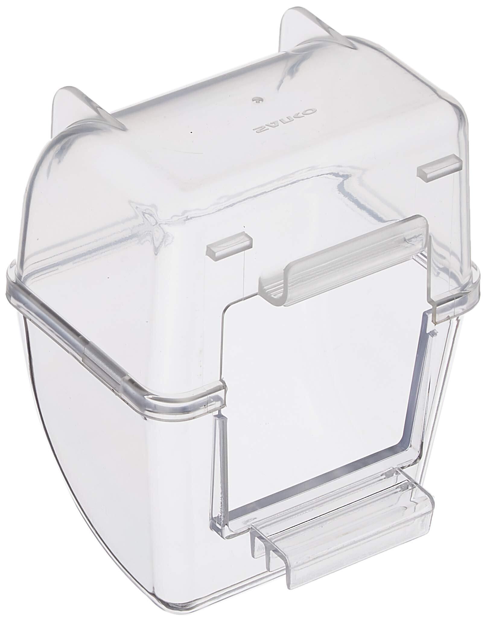 フルカバーでエサやエサ殻が飛び散りにくい小鳥用食器です。クリアーな本体で色の刺激が少なく小鳥に優しい食器です。