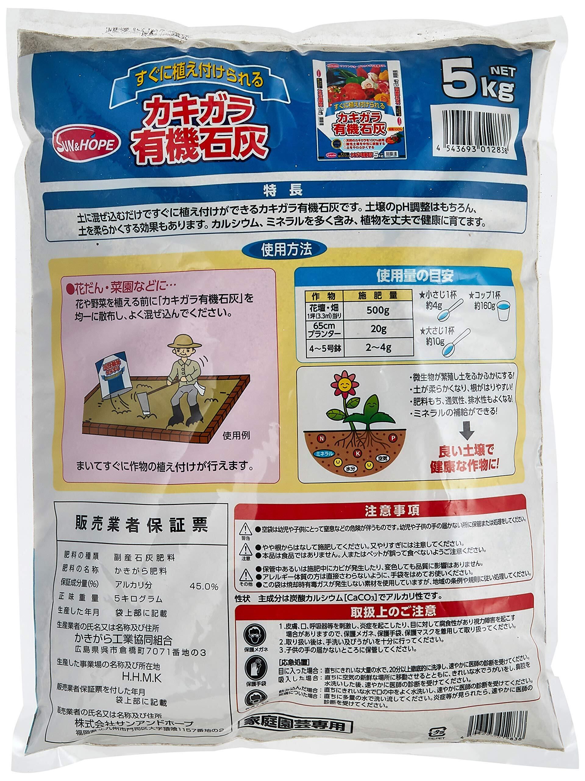 サンアンドホープ カキガラ有機石灰 5kg 有機100% すぐに植え付けられる 酸性土壌を中性に 土を柔らかくする