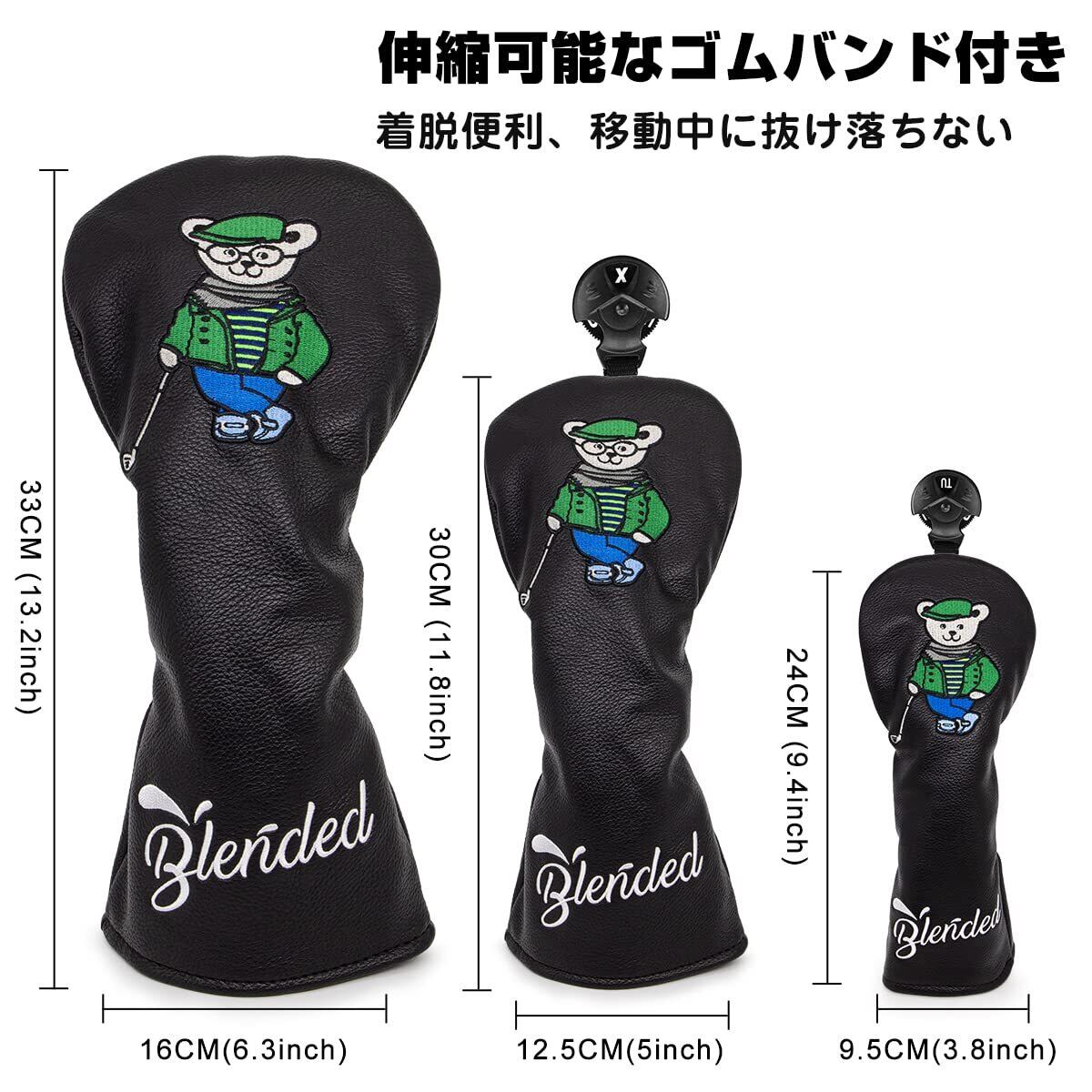 【新着商品】ゴルフクラブヘッドカバー ウッドカバー Bearゴルフ先生ドライバー フェアウェイウッド ユーティリティ ハイブリッド用ヘッドカバー 番号タグ付き ゴルフヘッドカバー PUレザー製 おしゃれ クマ刺繍 ブラック | gsmshop