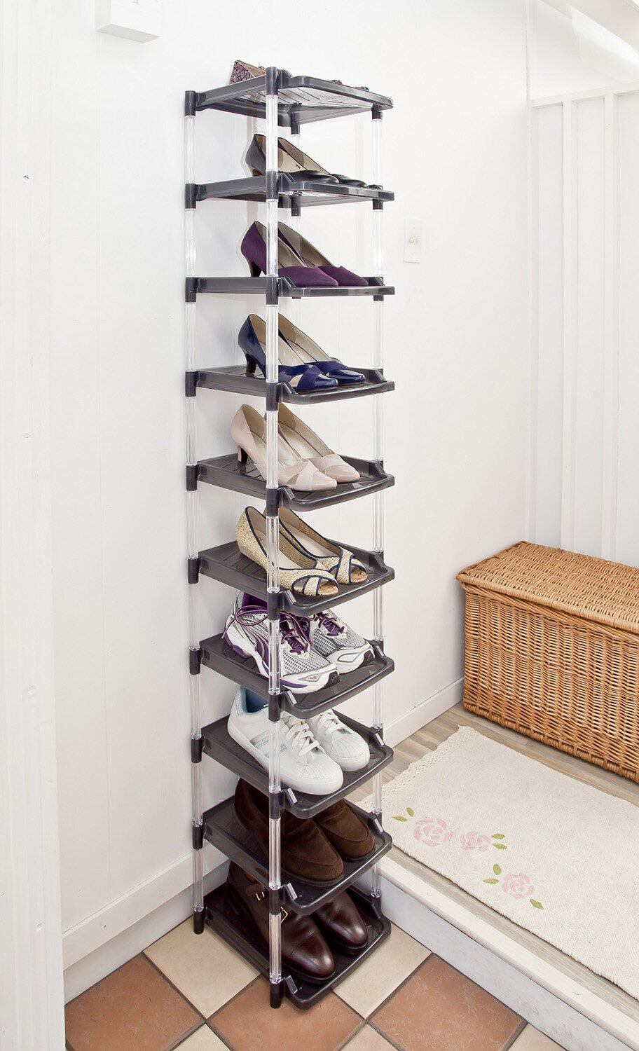 ●約30cm四方あれば最大10足分が収納できるスリムなタワー型