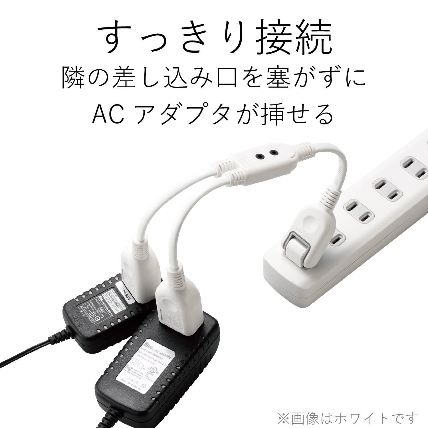 エレコム 電源タップ 0.2m ACアダプタ用電源延長コード 2個口 スイングプラグ ブラック T-ADR3BK