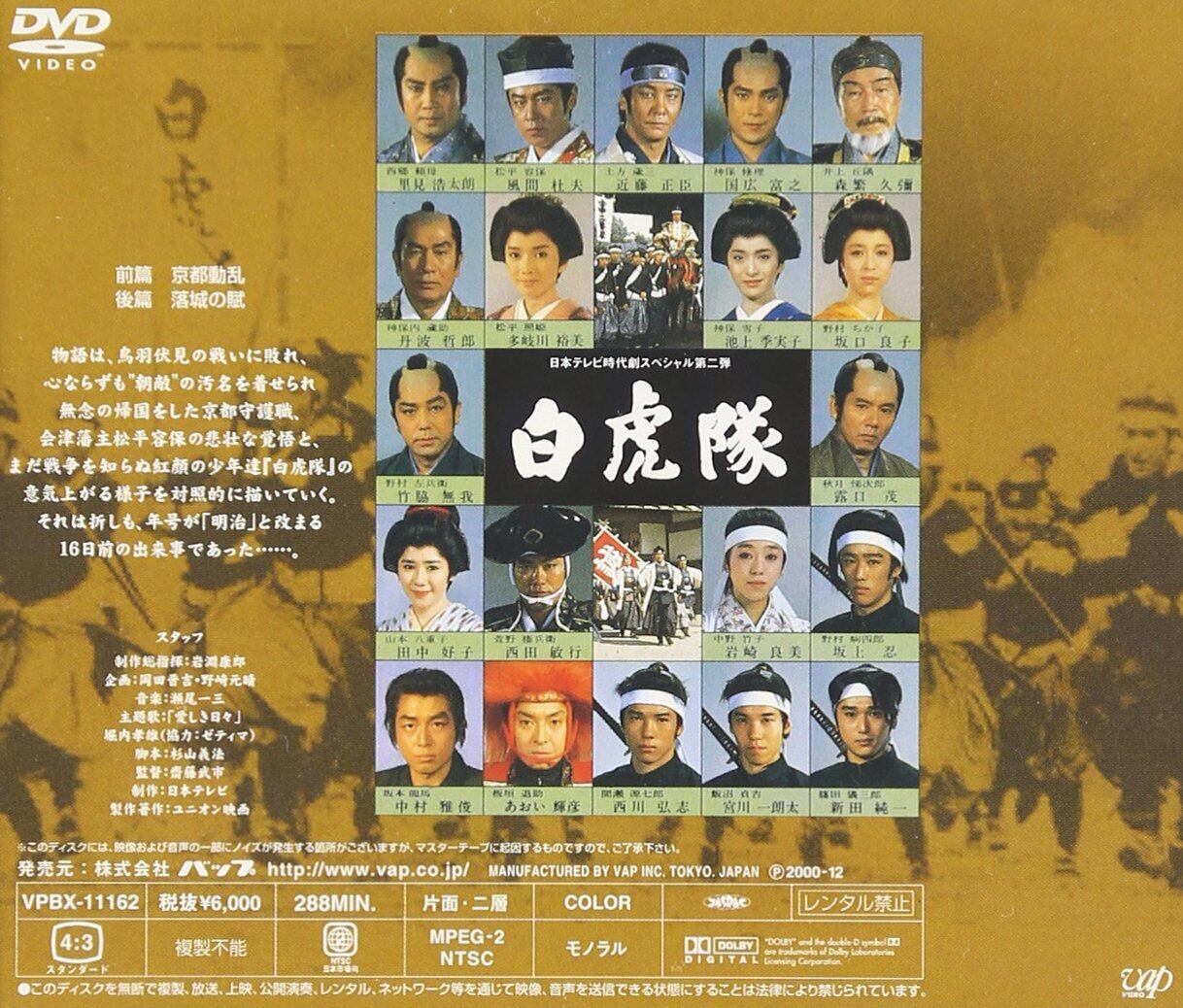 日本テレビ系で放映され好評を得た‘時代劇スペシャル’をDVD化。幕府への忠誠を誓いながら滅び去った若き武士たち「白虎隊」の雄姿と壮絶な運命を描く。