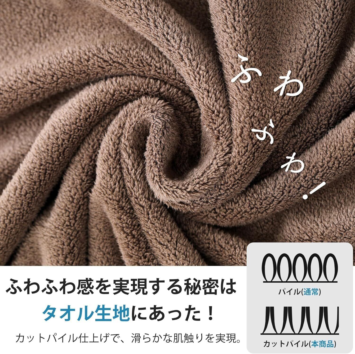 【優しい肌触り】一度あてるだけで、ふわふわのバスタオルがしっかりと水分を吸収してくれるので、ゴシゴシ擦る必要がありません。敏感肌の方や赤ちゃんにもOK!