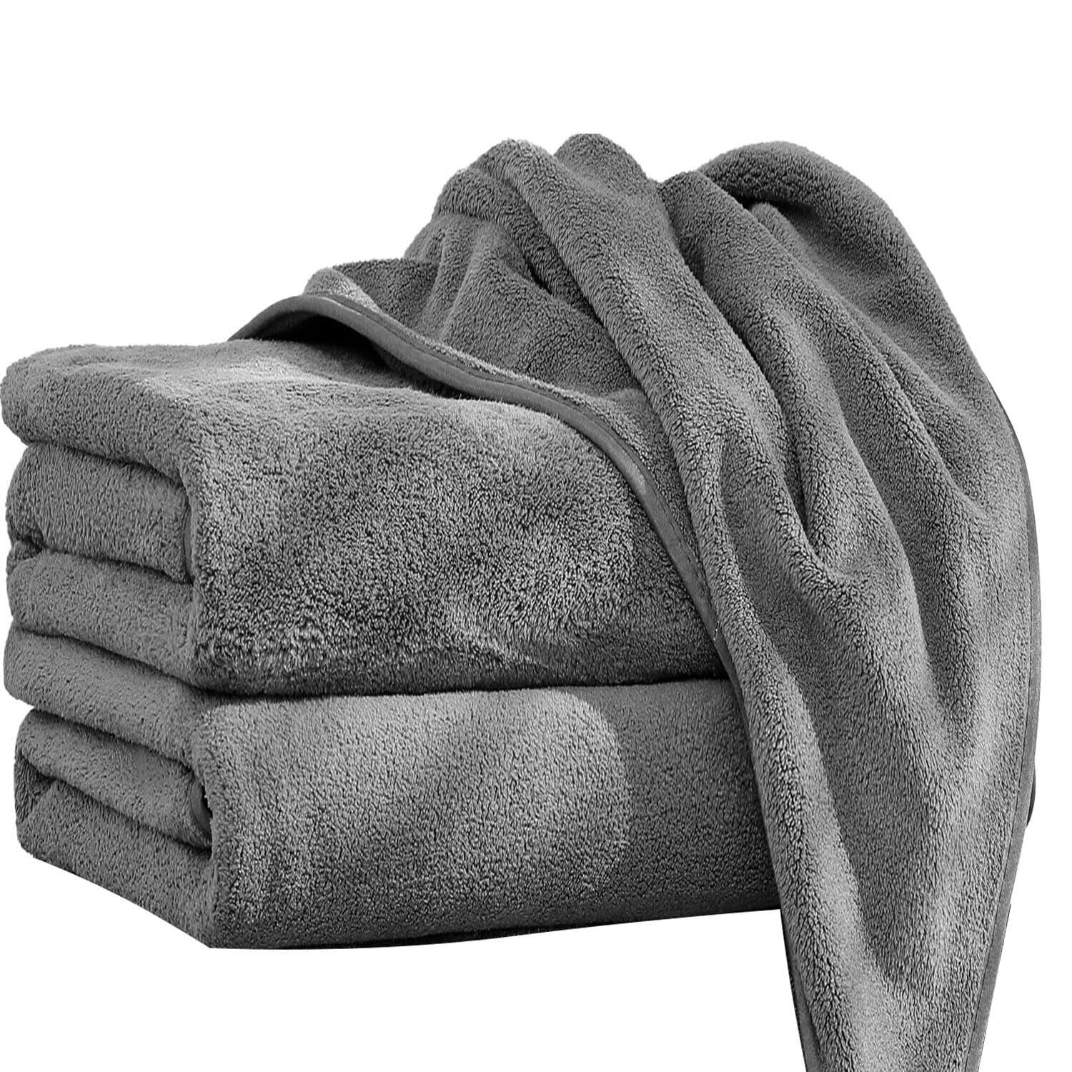 AISFA バスタオル マイクロファイバー 大判 ホテル仕様 バスタオルセット ホテルスタイルタオル ループ付き 浴用 プール用 家庭用 業務用 吸水 速乾 抗菌 防臭 ふわふわ 柔らかい (グレー, 2枚組/大判バスタオル 140*70cm)