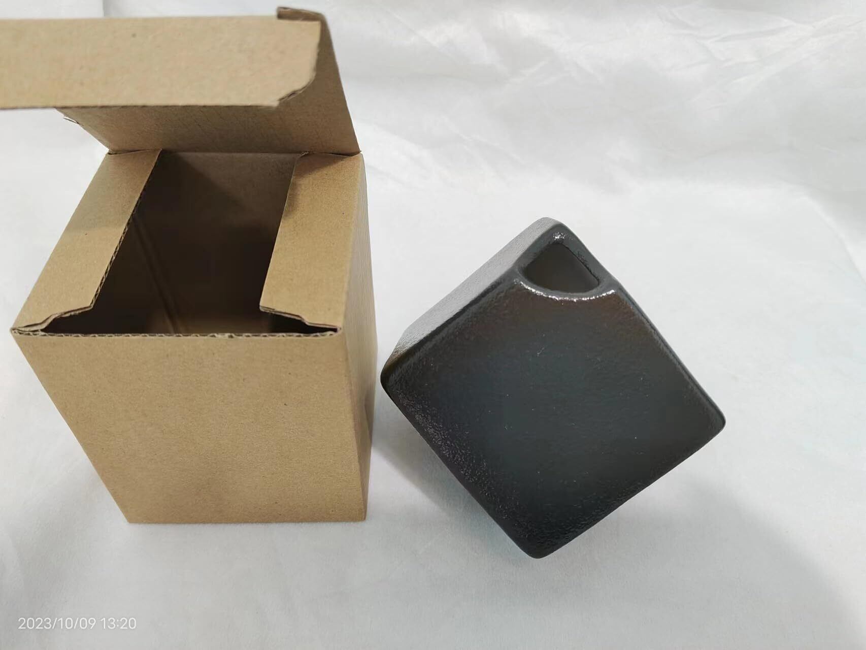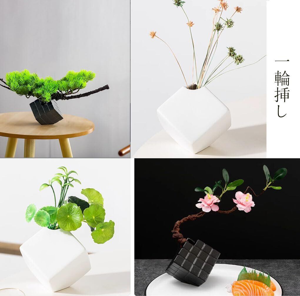 サイズ:本体のサイズは7cm×7cm×7cm ※立方体を斜めにした最大サイズ約2.8×9.3×10.5cm 予め御容赦くださいませ。重量:約215g 素材:セラミックス 品のある一輪差しです。 仏壇に生花を入れて飾ってみましょう。