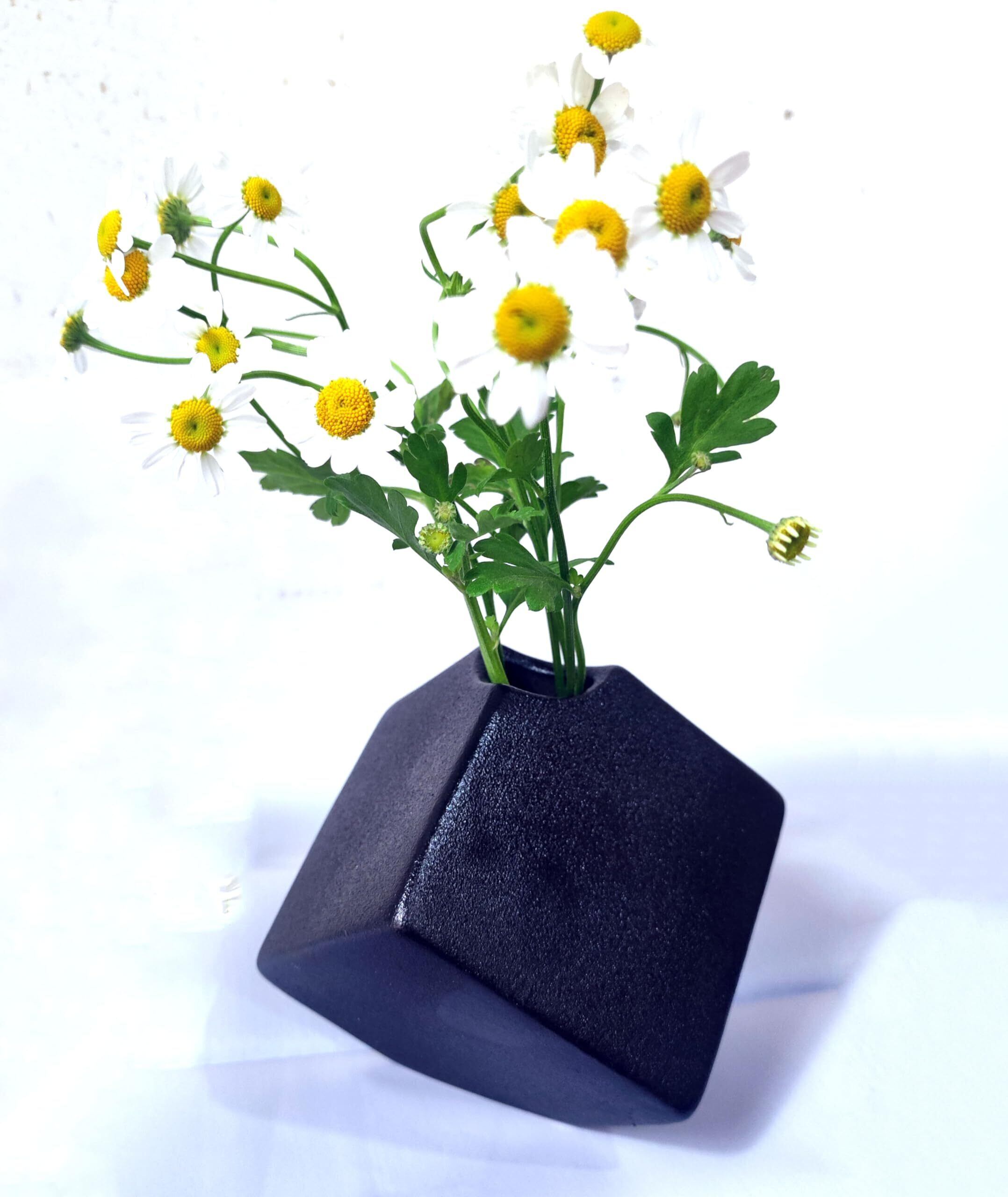 たった一輪の花や、庭のちょっとした地味な葉物でも、何でも挿して映えます。 斜めになった形がポイントでどなたでも草花を素敵に飾れるエレガントな陶器ミニ花器&一輪挿しです。大きさもちょうど良く 使い勝手もいいです。お花も映えて際立つのです。陶器花瓶なので、季節のお花、葉もの、枝もの、造花、ドライフラワーなど、どんな花材も使用可能です。