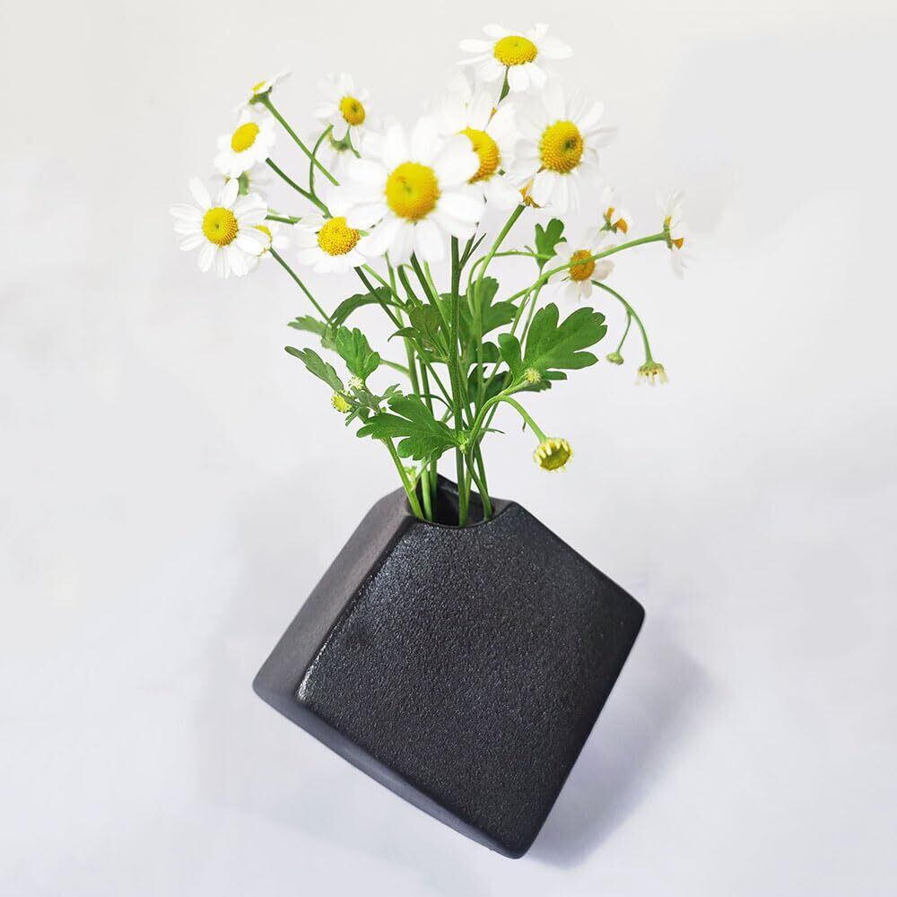一輪挿し花瓶 ミニ花器陶器花瓶花入小さい花びん 黒かびんフラワーベースFukuka® シンプルカビん1個入り仏壇か びんとうき花器小型仏壇用ミニ花ビン(ブラックB)