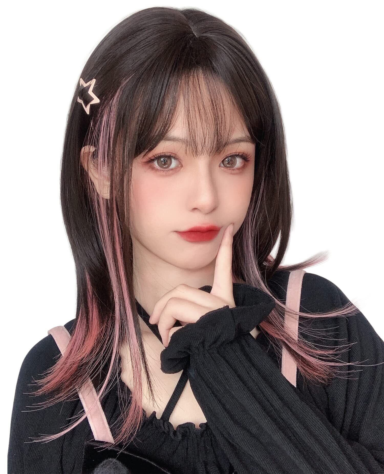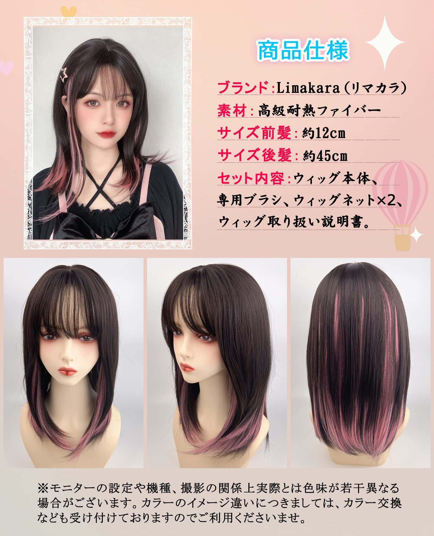 【特価セール】Limakaraウィッグ セミロング ストレート インナーカラー ピンク グラデーション ロング ミディアム フルウィッグ ロリータ wig コスプレ サラサラ ぱっつん 女性 小顔 自然 ネット付き ツートンブラックピンク | gsmshop