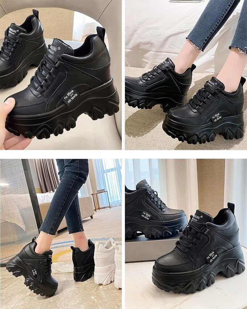 [Fosys] 厚底スニーカー スニーカー レディース ダッドスニーカー 厚底 インヒール レースアップ 黒 白 歩きやすい 美脚
