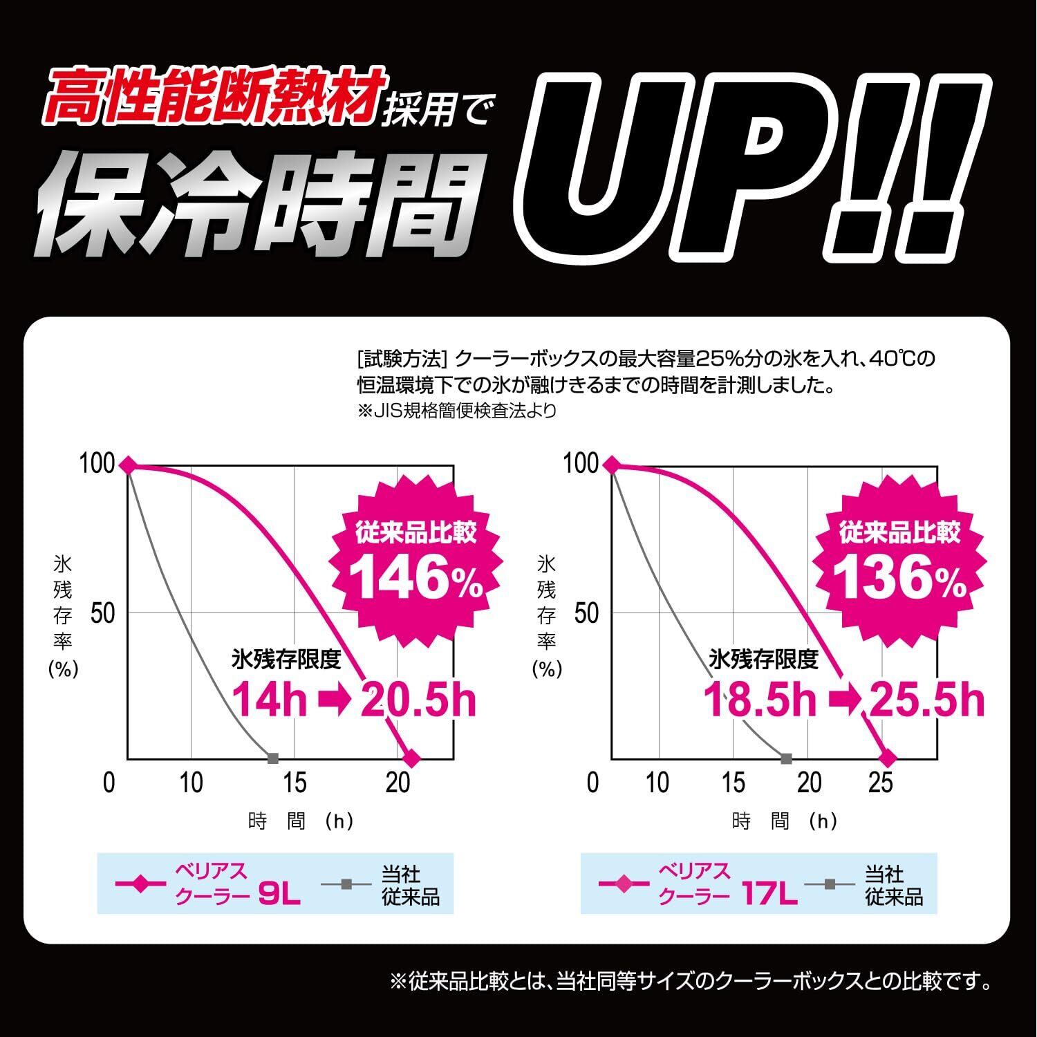 高性能断熱材採用で 当社従来品に比べ保冷時間146%