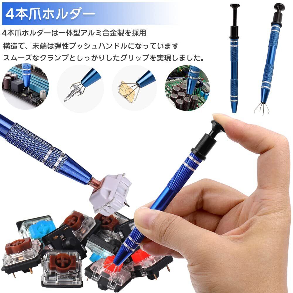 4本爪ホルダーは一体型アルミ合金製を採用。構造で、末端は弾性プッシュハンドルになっています、スムーズなクランプとしっかりしたグリップを実現しました。小さな部品(バネやICなど)を拾うことも可能です。 電子機器愛好家の方へのプレゼントにも最適です。