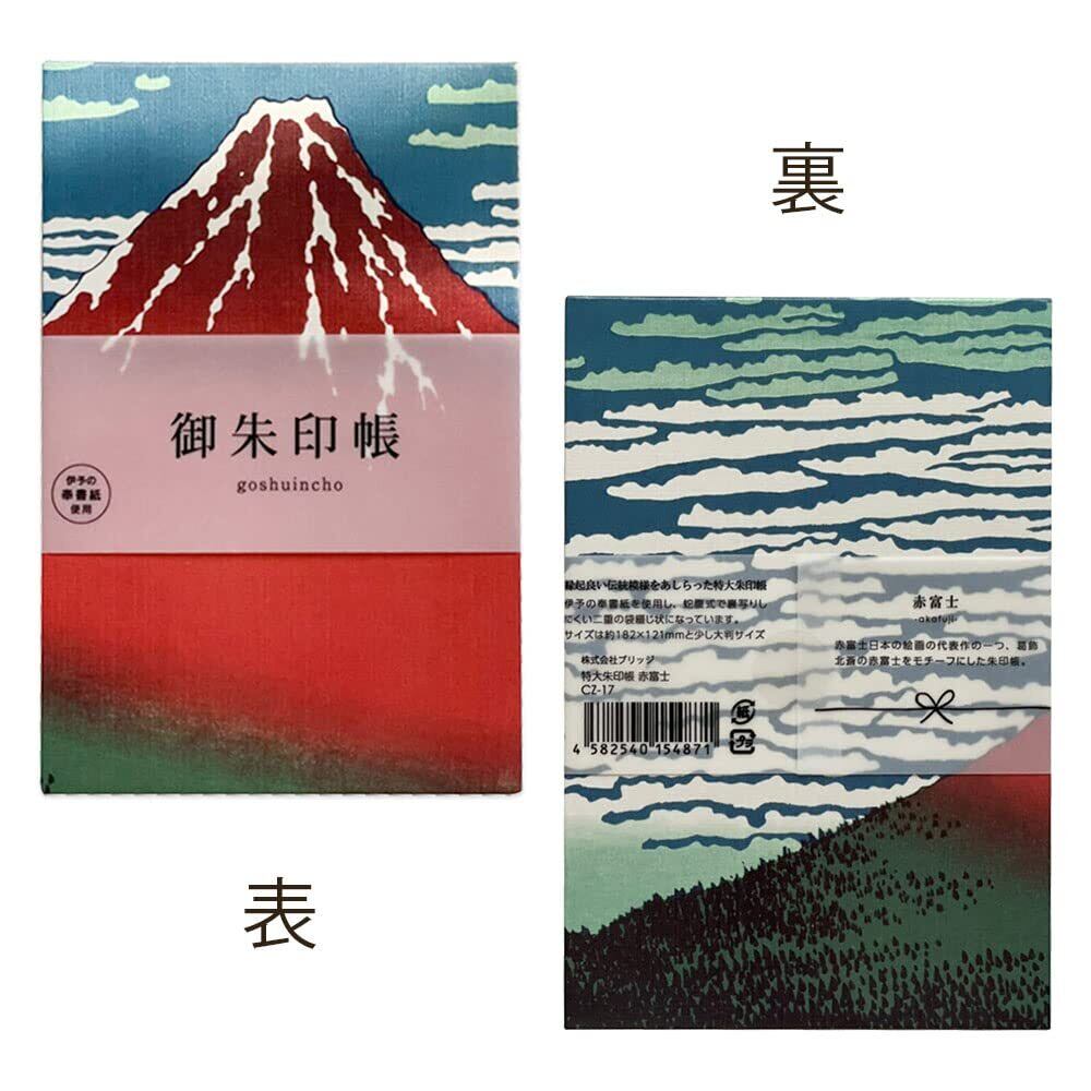 (Bridgehappy) 御朱印帳 御城印 集印帳 御朱印 大判 182×121mm 蛇腹 両面48頁 (赤富士)