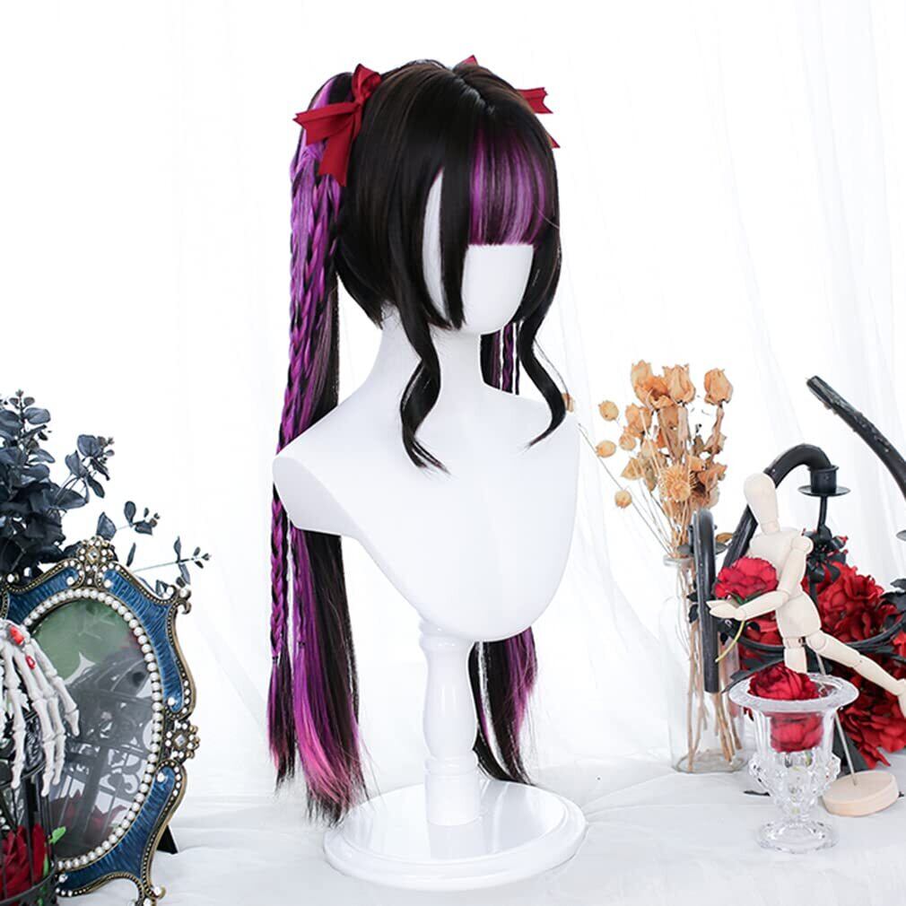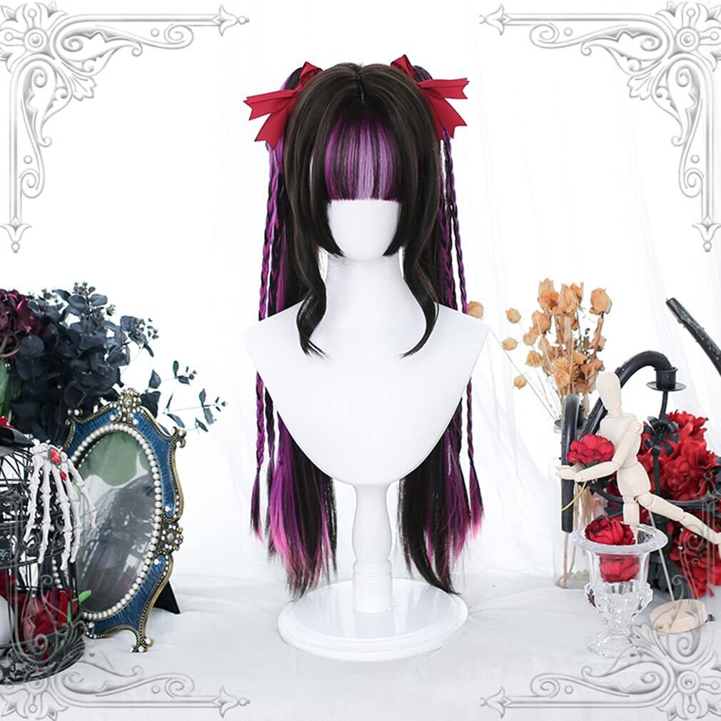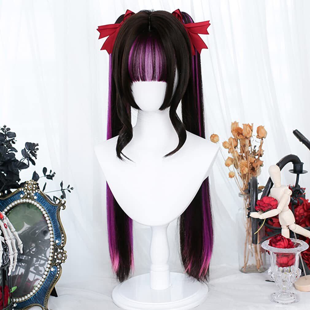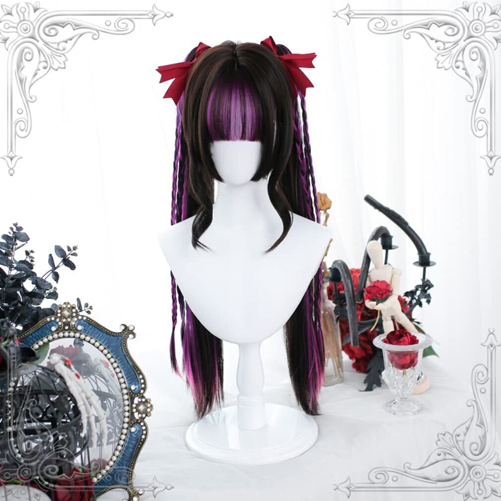【特価セール】ロリータ ウィッグ 原宿風 GAL系 セット ツインテール ロング 黒 紫 メッシュ かつら カツラ 耐熱 変装用ウィッグ コスチューム小物 パーティー お祭り イベント おしゃれ cosplay wig | gsmshop