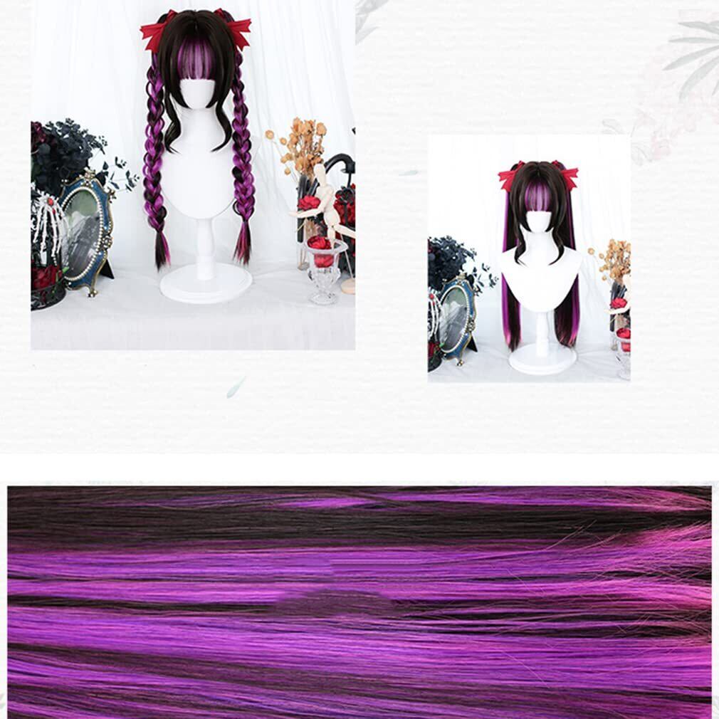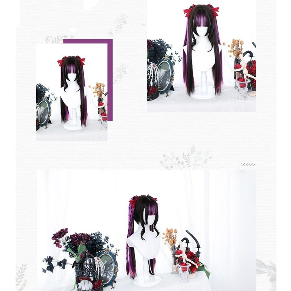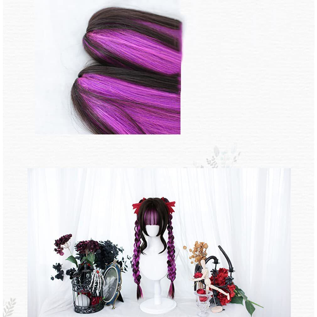 ロリータ ウィッグ 原宿風 GAL系 セット ツインテール ロング 黒 紫 メッシュ かつら カツラ 耐熱 変装用ウィッグ コスチューム小物 パーティー お祭り イベント おしゃれ cosplay wig