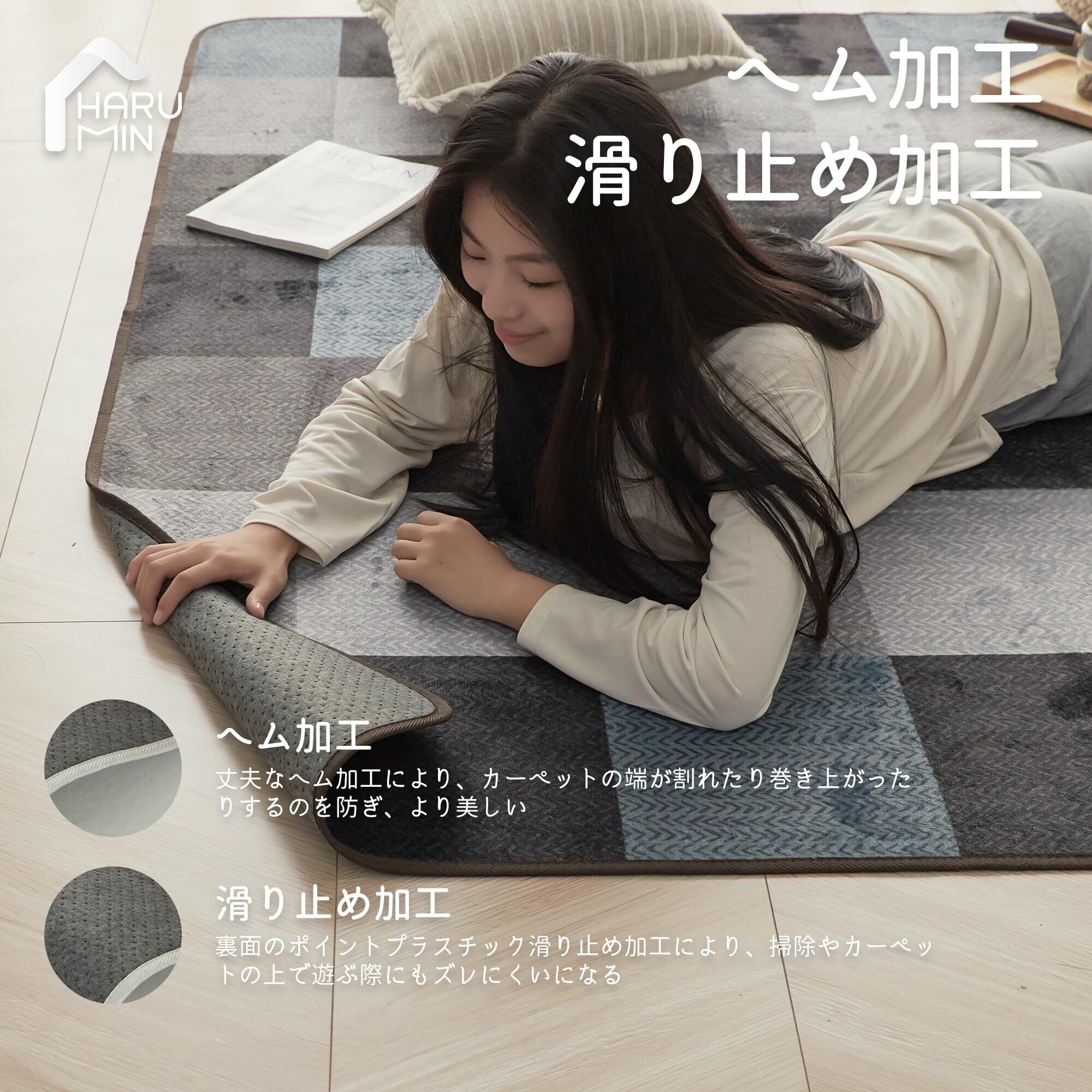 【滑り止めでズレにくく、まるで床に貼りついているかのようなカーペット】丈夫なエッジ加工と底部の点プラスチック加工により、上で走ったり飛び跳ねたり、また掃除機をかけても移動しにくくなっており、子供やペット、お年寄りのいるご家庭におすすめです。