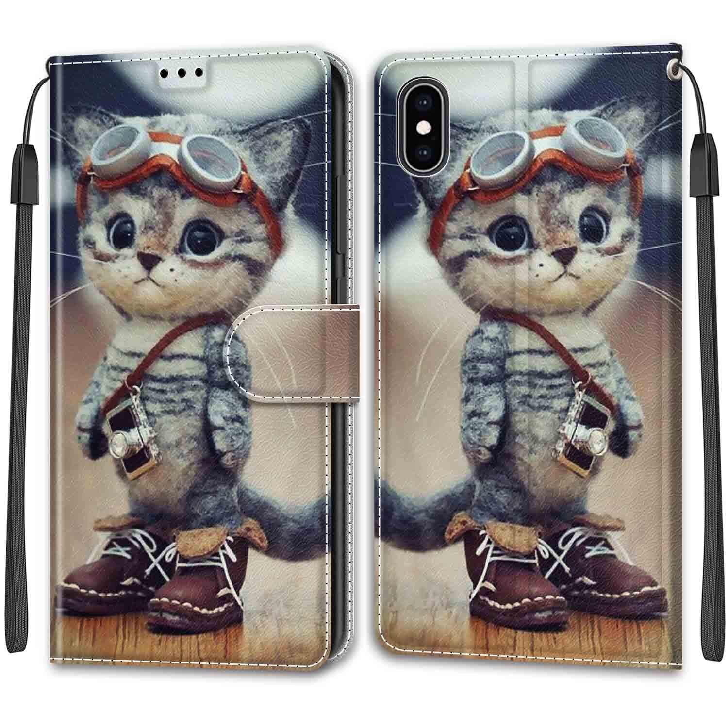 KENHONER iPhone XS Max ケース 手帳型 対応 薄型 超軽量 高級PUレザー ケース 保護ケース カードポケット付き マグネット式 スタンド機能 耐衝撃 スマートフォンケース アイフォンXS Max ケース (スーツ猫)