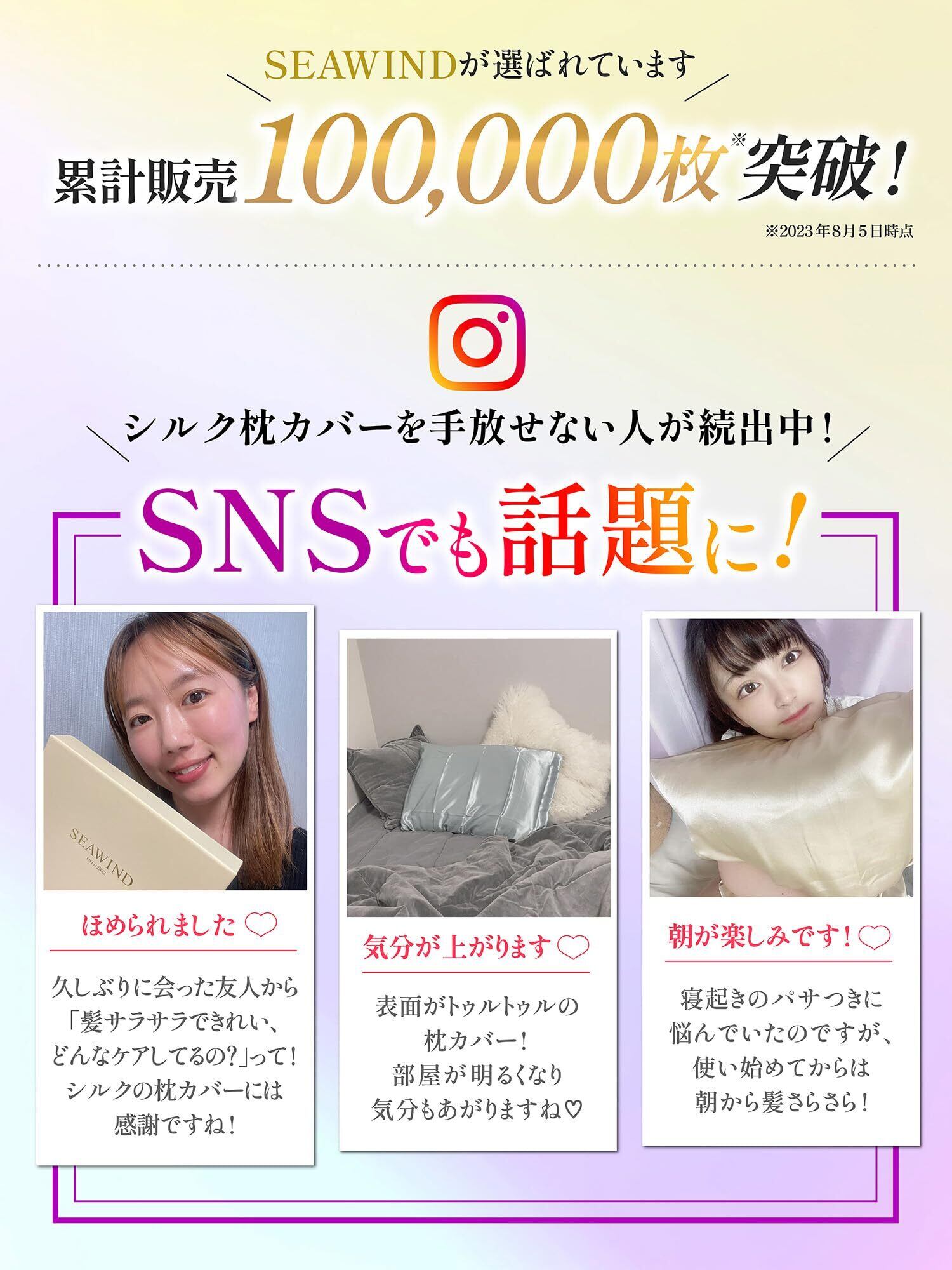 【希少な6Aランクシルク枕カバー】SEAWINDのシルク 枕カバーは、両面に希少な6Aランクのシルクを採用しています。シルク枕カバー独特の光沢感で高級感のある一品。純粋なマルベリーシルクのなかでも、高品質な6Aランク&19匁の厚みのある生地を厳選しております。天然タンパク質と人肌に極めて近いアミノ酸成分を含んでいるため、敏感な肌の人や赤ちゃん、ご高齢の方でも快適にご利用いただける枕カバーです。