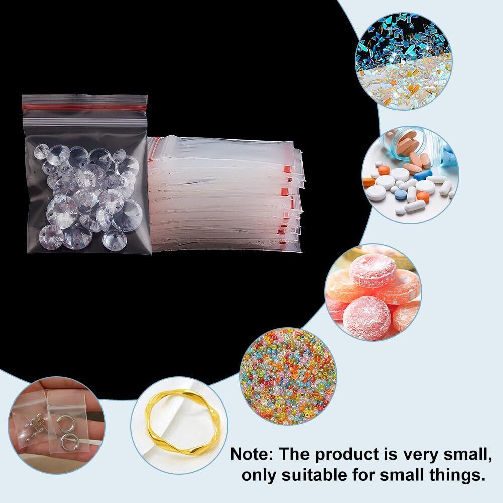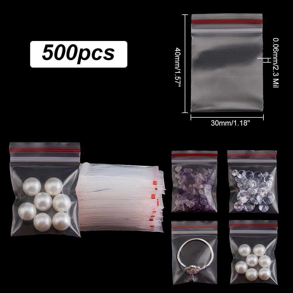 PandaHall 500枚 チャック袋 3x4cm ジッパー式ポリ袋 小分け収納袋 密封保存袋 プラスチック袋 透明 無地 リサイクル可能 小物入れ チャック上まで4cm