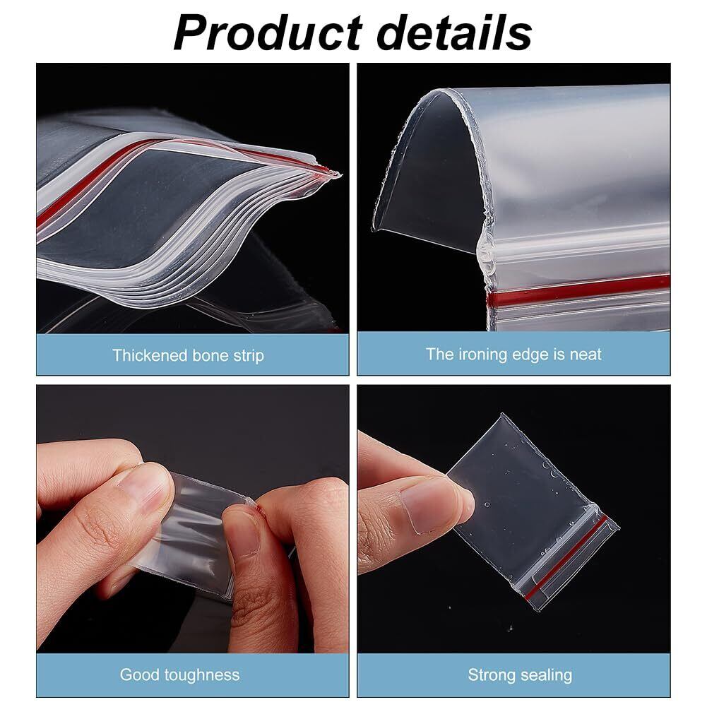 【特価商品】PandaHall 500枚 チャック袋 3x4cm ジッパー式ポリ袋 小分け収納袋 密封保存袋 プラスチック袋 透明 無地 リサイクル可能 小物入れ チャック上まで4cm | gsmshop