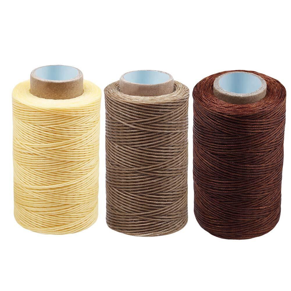 RMTIME 蝋引き糸 ロウ引き糸 ワックスコード 手縫い 編み 手芸 紐 DIY レザークラフト 糸 ろう引き糸 よく使うカラー3個セット 1mm直径 長さ250m 紐 糸 革 レザークラフト ライトナチュラル 初心者