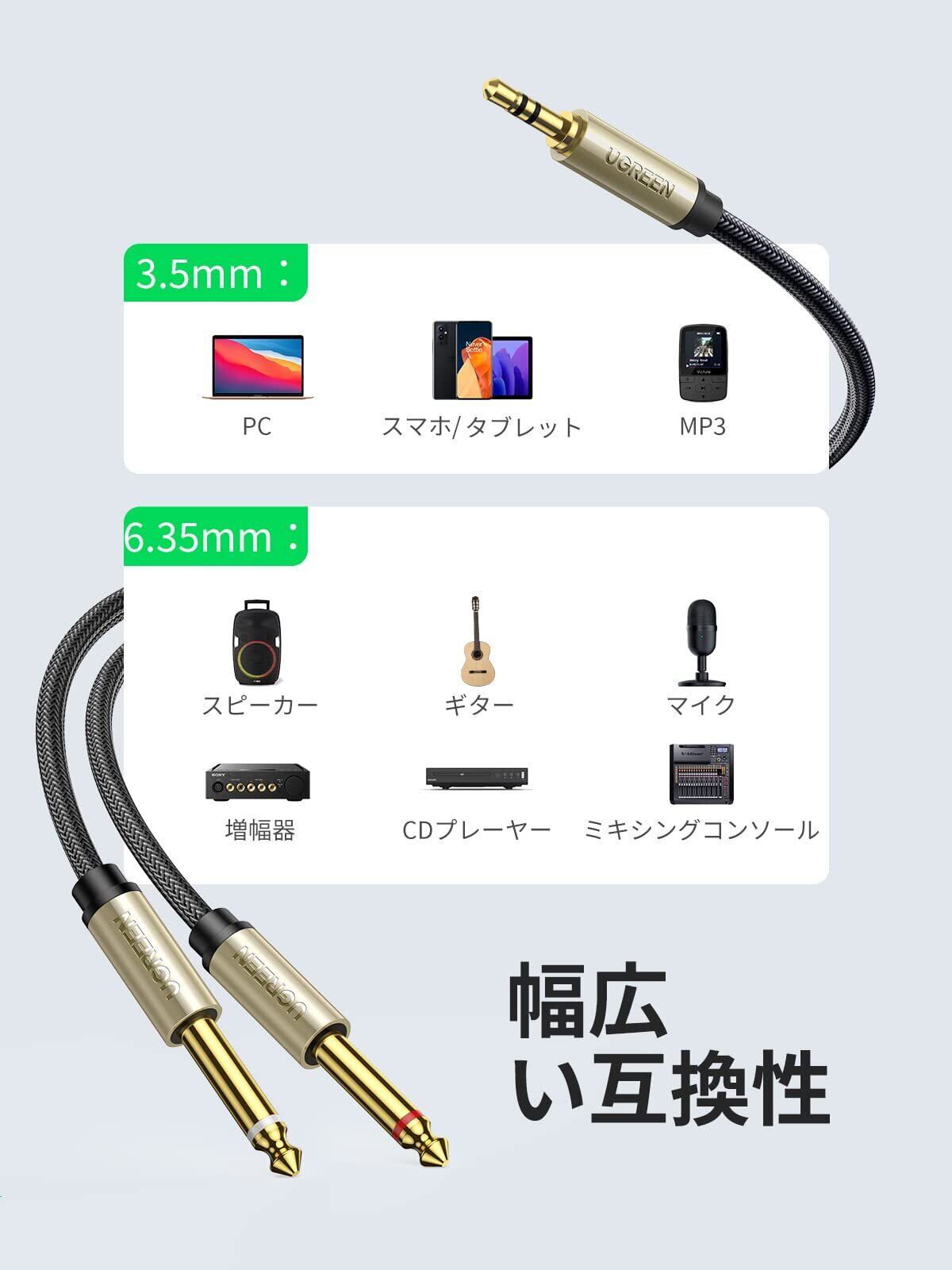UGREEN 6.35mm*2 to 3.5mm オーディオ変換ケーブル 変換ステレオミニプラグ 6.35mm 2分配ケーブル オス-オス 高耐久性ナイロン編み HIFI音質 24K金メッキ コネクター スマホ/PC/CDプレーヤー/スピーカー/アンプ等に適用