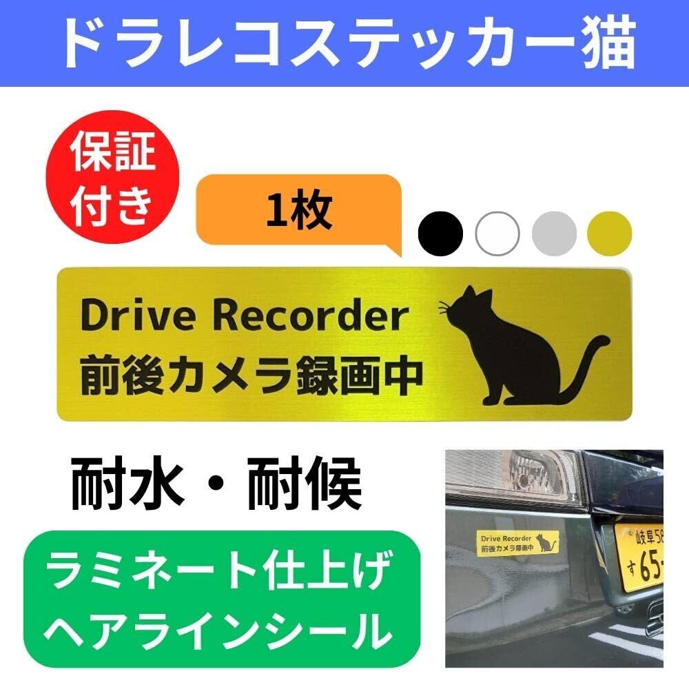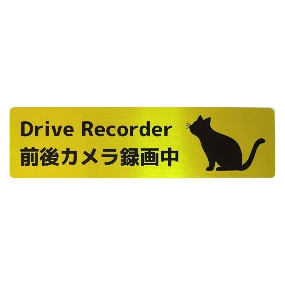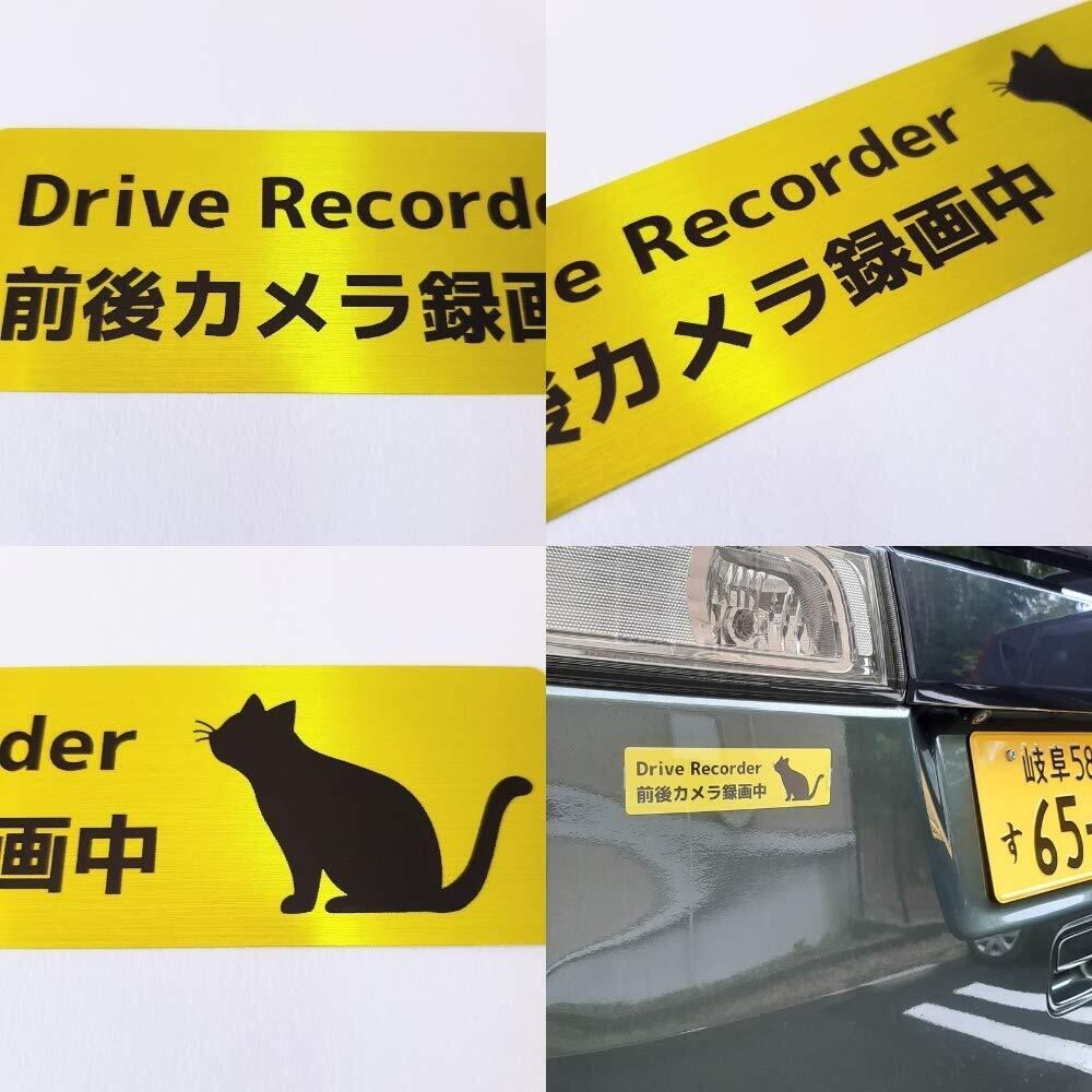 ドラレコ シール 猫 ねこ ステッカー Drive recorder 前後カメラ録画中 (イエローSヘアライン, 15×4cm)