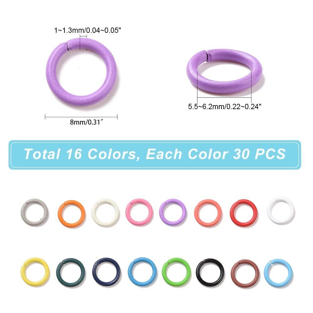 PandaHall 丸カン カラー 480個 16色 丸環 マルカン 8mm リング 基礎パーツ 金具セット アクセサリーパーツ ジュエリー用 ピアス イヤリング ブレスレットなど 製作キット 手作り 素材 材料 DIY用 クラフト用 ジャンプリング