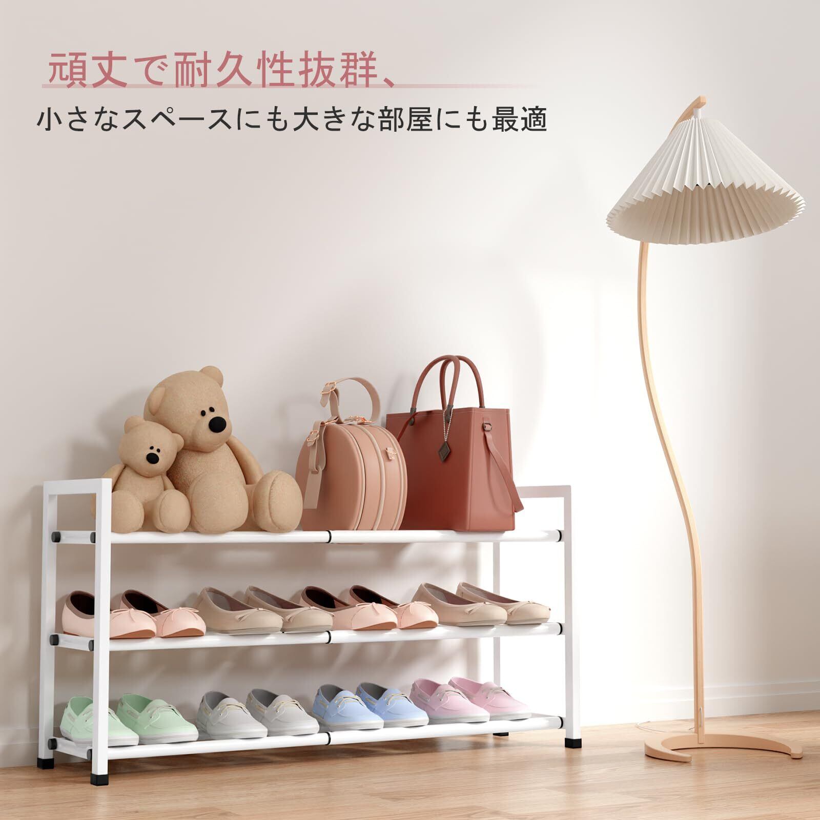 3段 伸縮式 シューズラック スリム 靴箱 スリム 省スペース 靴 収納 下駄箱 段ボールストッカー 玄関 廊下 鉄パイプ45cmから83cm伸縮 組み立て式(ホワイト)