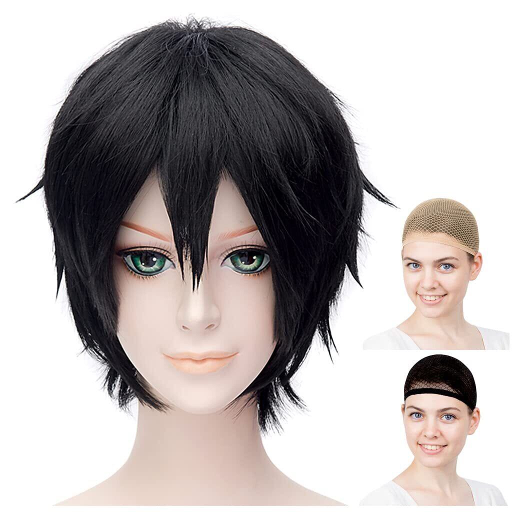 CaseEden コスプレ ウィッグ ショート 30cm 耐熱 黒髪 ブラック ウィッグネット2個セット