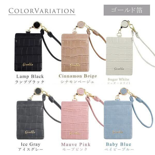 【特価商品】[ジゼル] パスケース リール付き レディース 定期入れ メンズ idカードホルダー icカードケース 社員証 カードケース 両面 ストラップ付 通勤 通学 クロコ風型押し(Mauve Pink/モーブピンク(ゴールド箔) | gsmshop