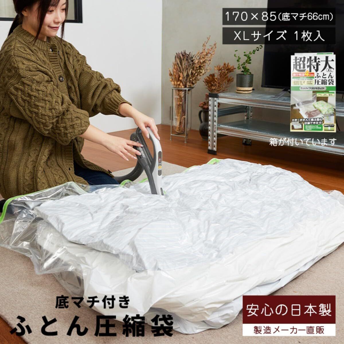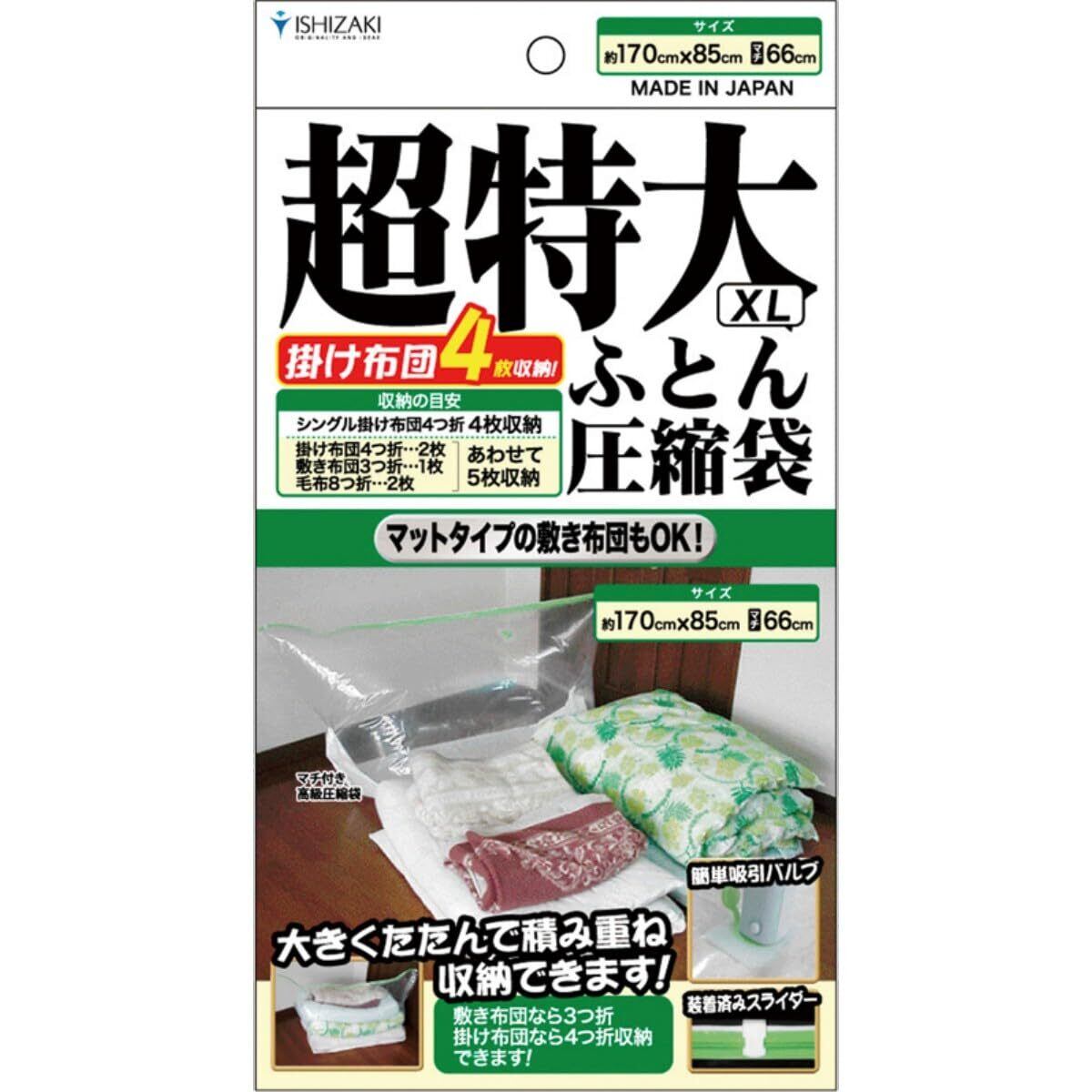 立体圧縮 布団圧縮袋 超特大 XLサイズ 1枚入り / バルブ式 圧縮袋 ふとん 掃除機対応 布団収納 日本製 石崎資材 FL-03B