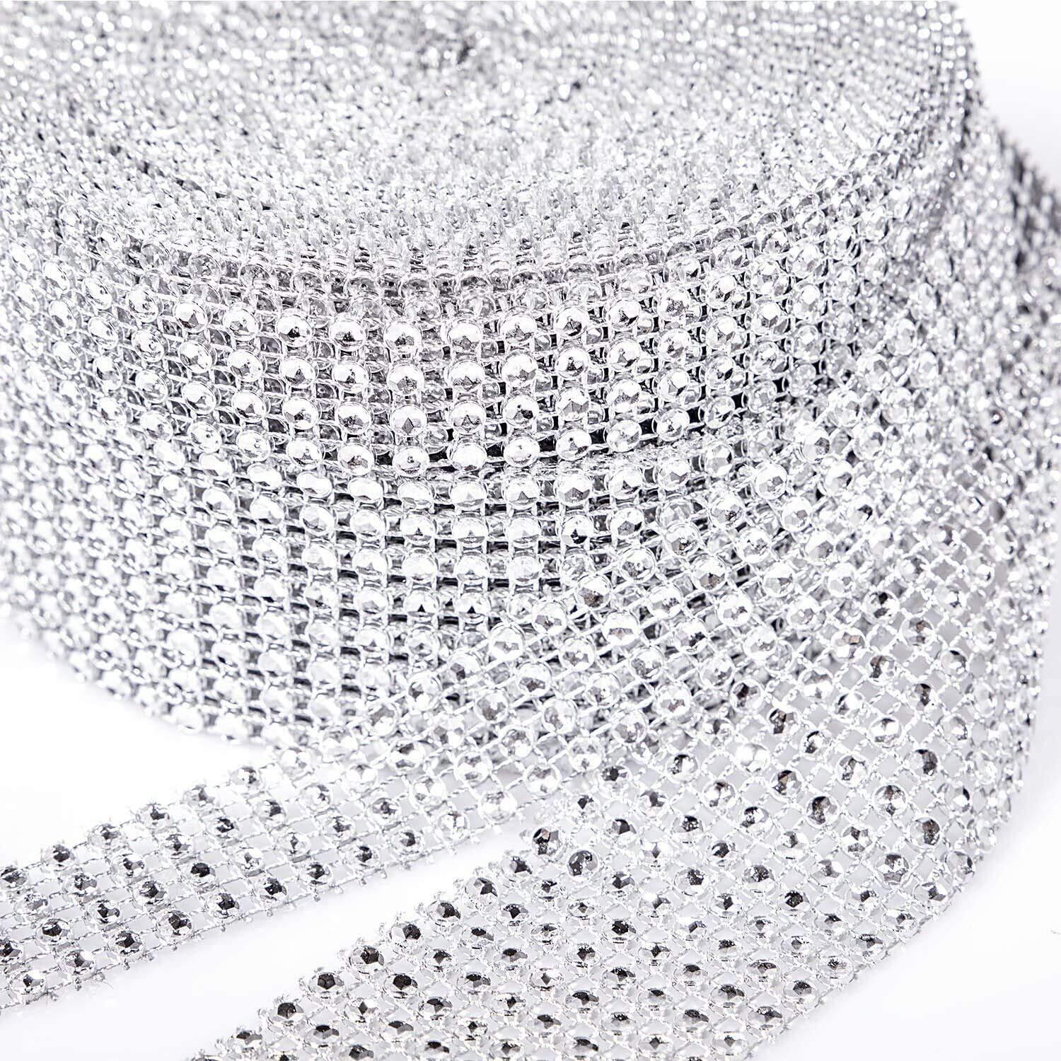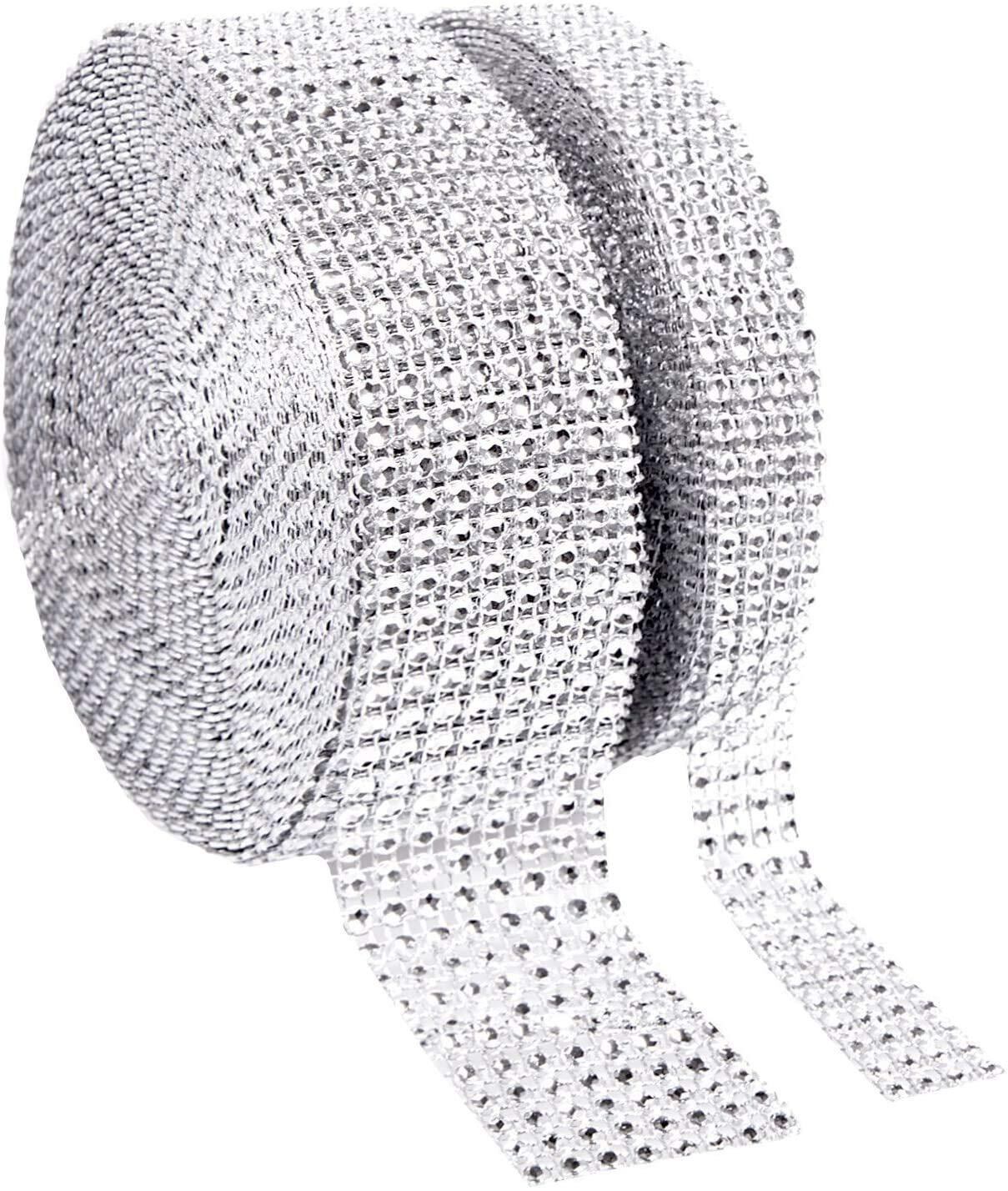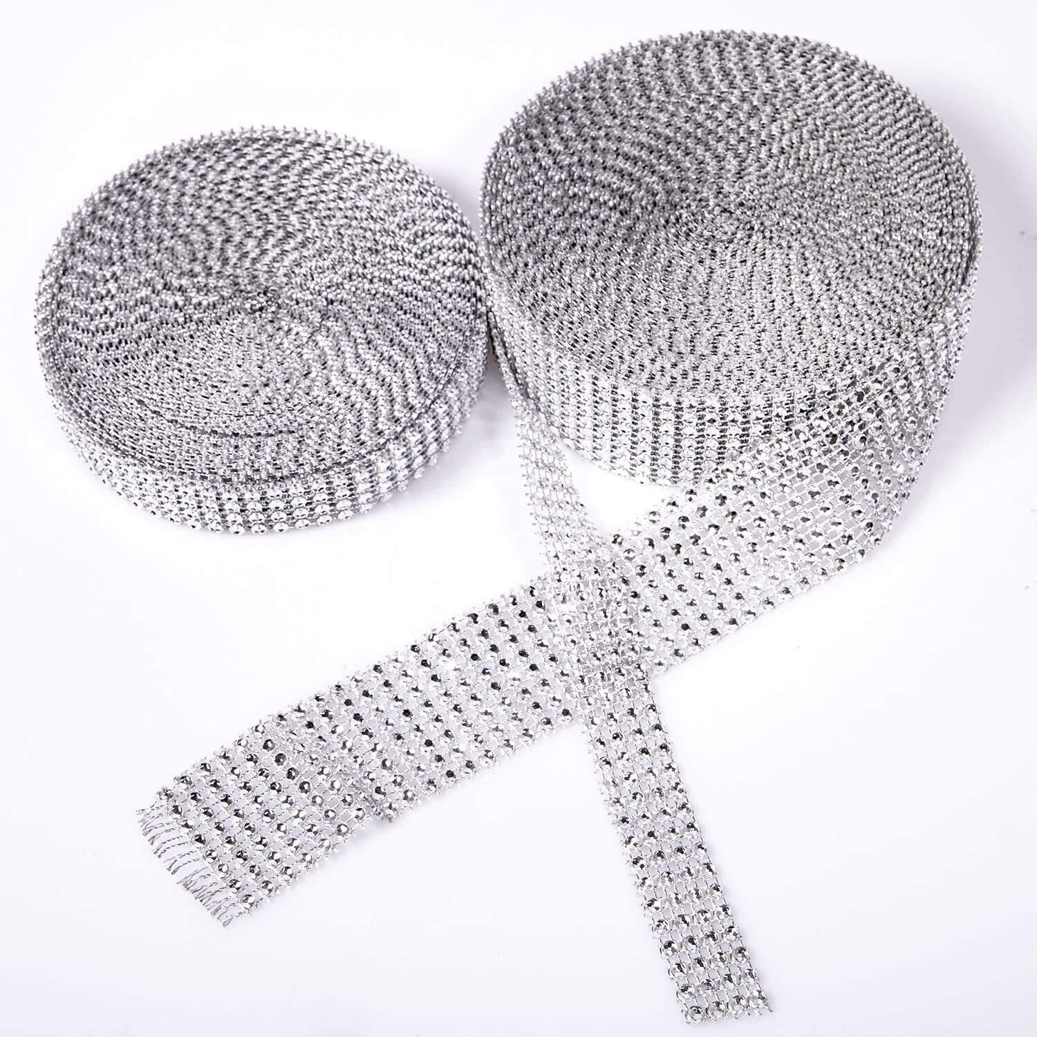2巻 ラインストーンリボン 4行・8行 スパンコール キラキラ ダイヤモンド リボン プラスチック製 手芸材料 DIY素材 ウェディング 衣類飾り シルバー