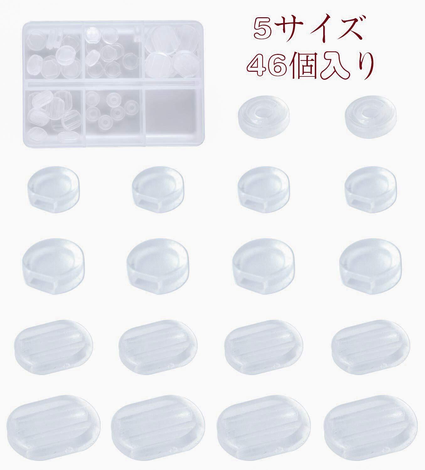 イヤリングカバー 5種類 46個セット シリコン クリップ式 ネジ式 カバー 半透明 目立たない 痛くない 滑り止め ヤリング クリップ 式 カバー パーツ 収納ケース付き