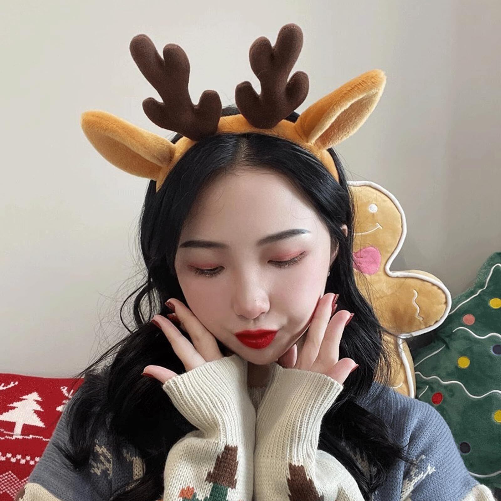 【立体感あふれる】トナカイカチューシャの上の2つの鹿の耳は綿でいっぱいで、変形しにくく、とてもかわいいです。クリスマスやハロウィンはもちろん、コスプレの小物や、日常のヘアアクセサリーとしてもお勧めです