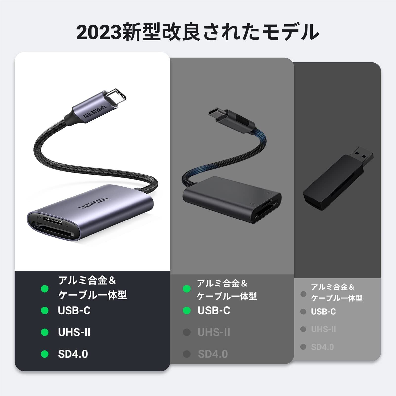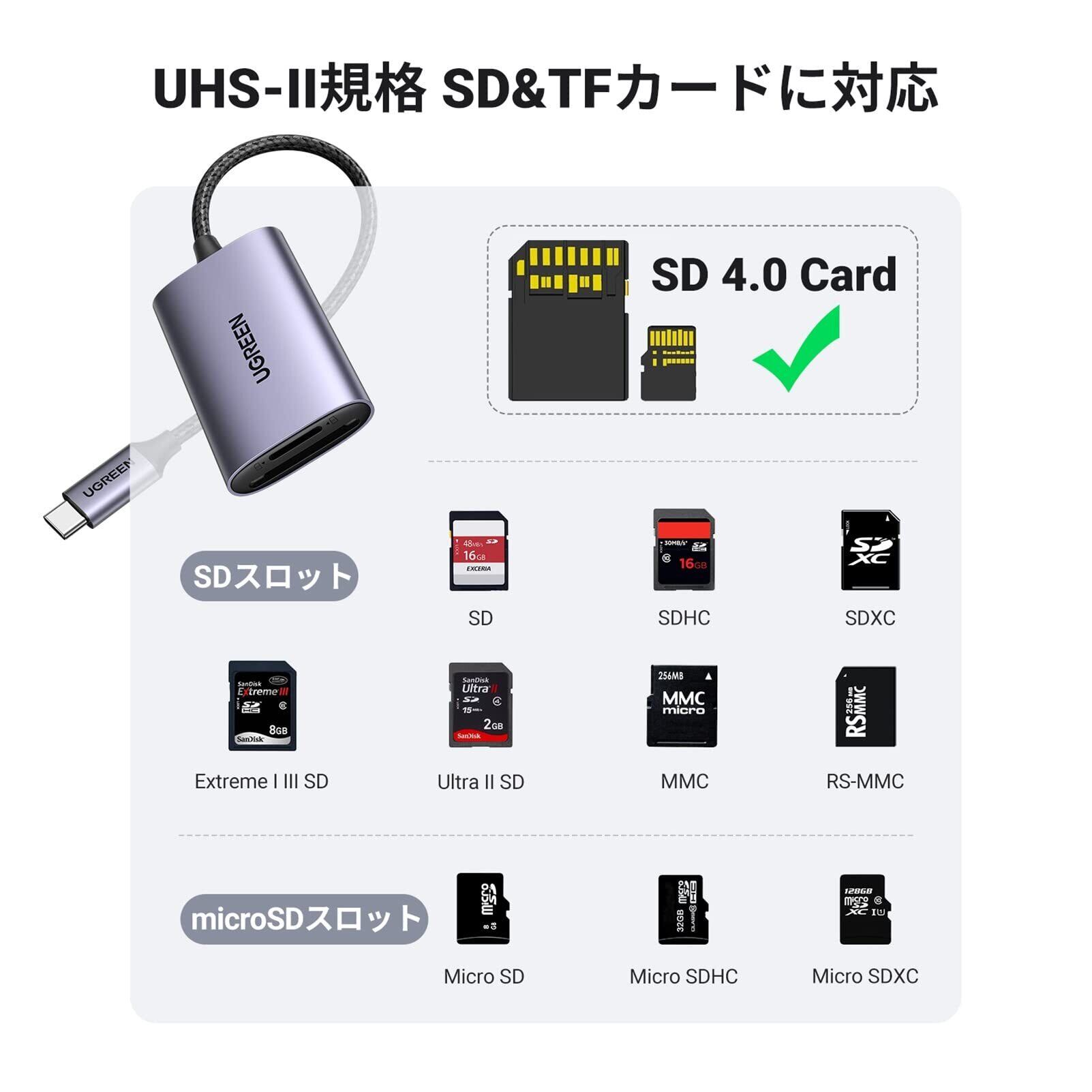 UGREEN USB-C SDカードリーダー SD 4.0 UHS-II SDXCカード 4K動画 高速転送 UHS-I/UHS-II 用 SDXC/SDHC/SD/MMC/RS-MMC/microSDXC/microSD/microSDHCなど uhs2 メモリーカード リーダー
