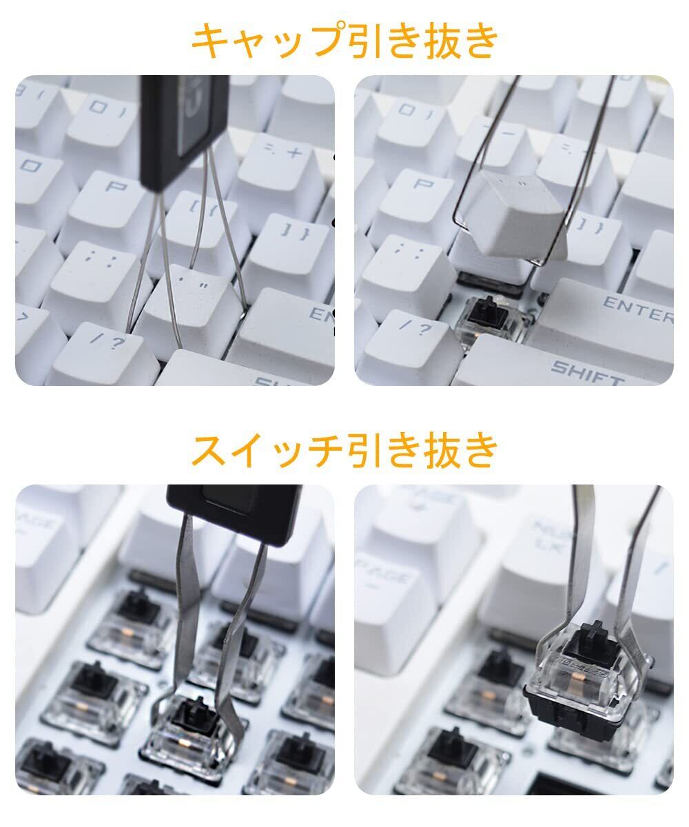 【キーキャップ引抜】手間が減れる引き抜きやすい!2本のステンレスワイヤーでキーキャップを挟み込み、力入れすぎずに上へ引き抜くだけで完了!