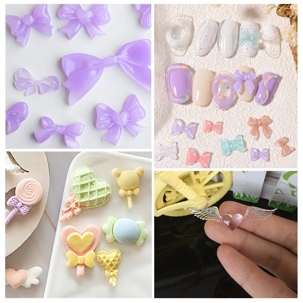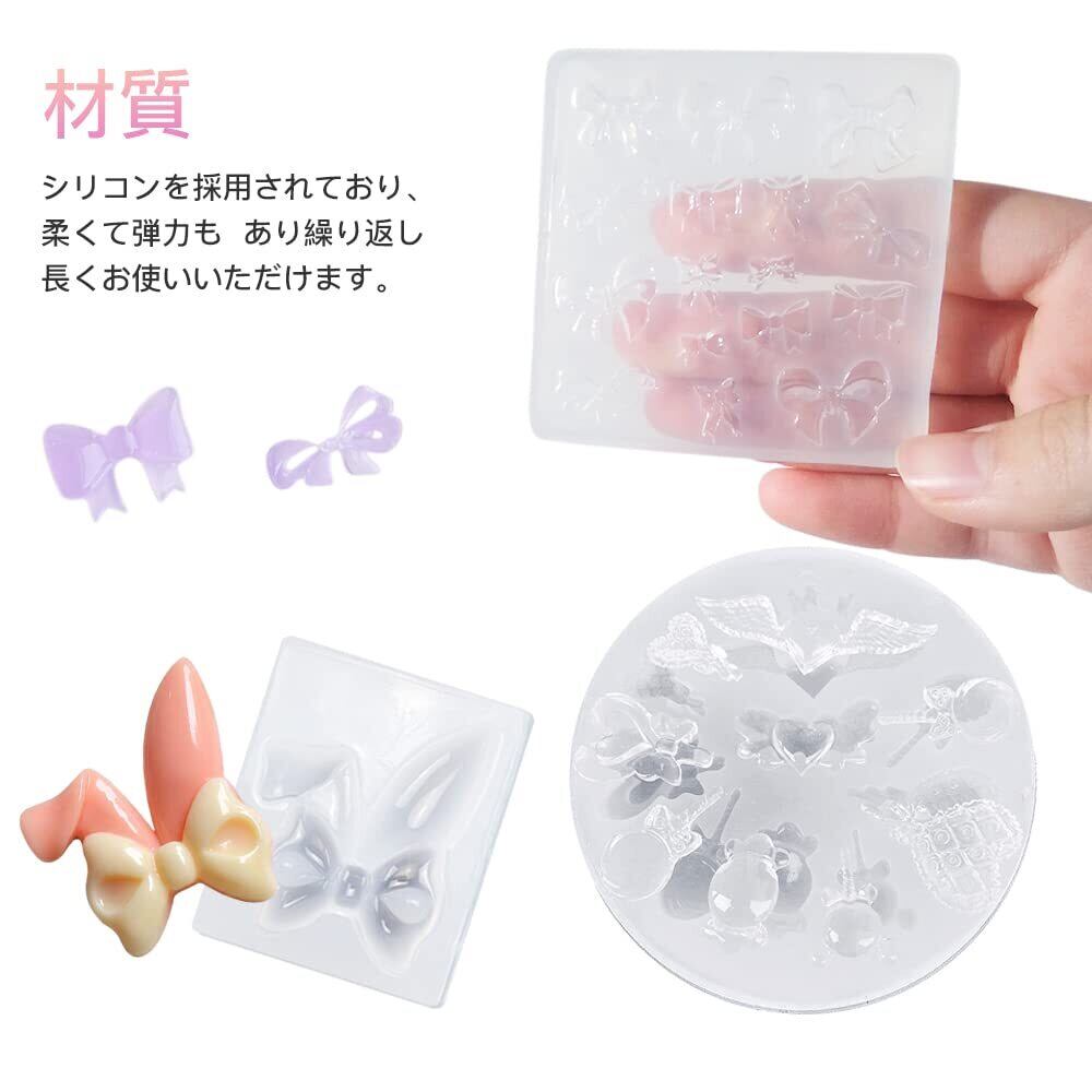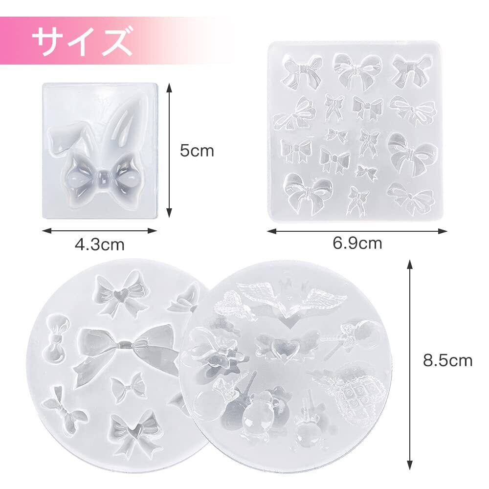 サムコス 4個セット リボン シリコンモールド リボン四角型 ちょう結び ウサ耳リボン キャンディー型 uvレジン 粘土 ソフトモールド DIY ペンダント イヤリング ヘアクリップ アクセサリー 樹脂工芸品 デコパーツ ハンドメイド素材 (R)