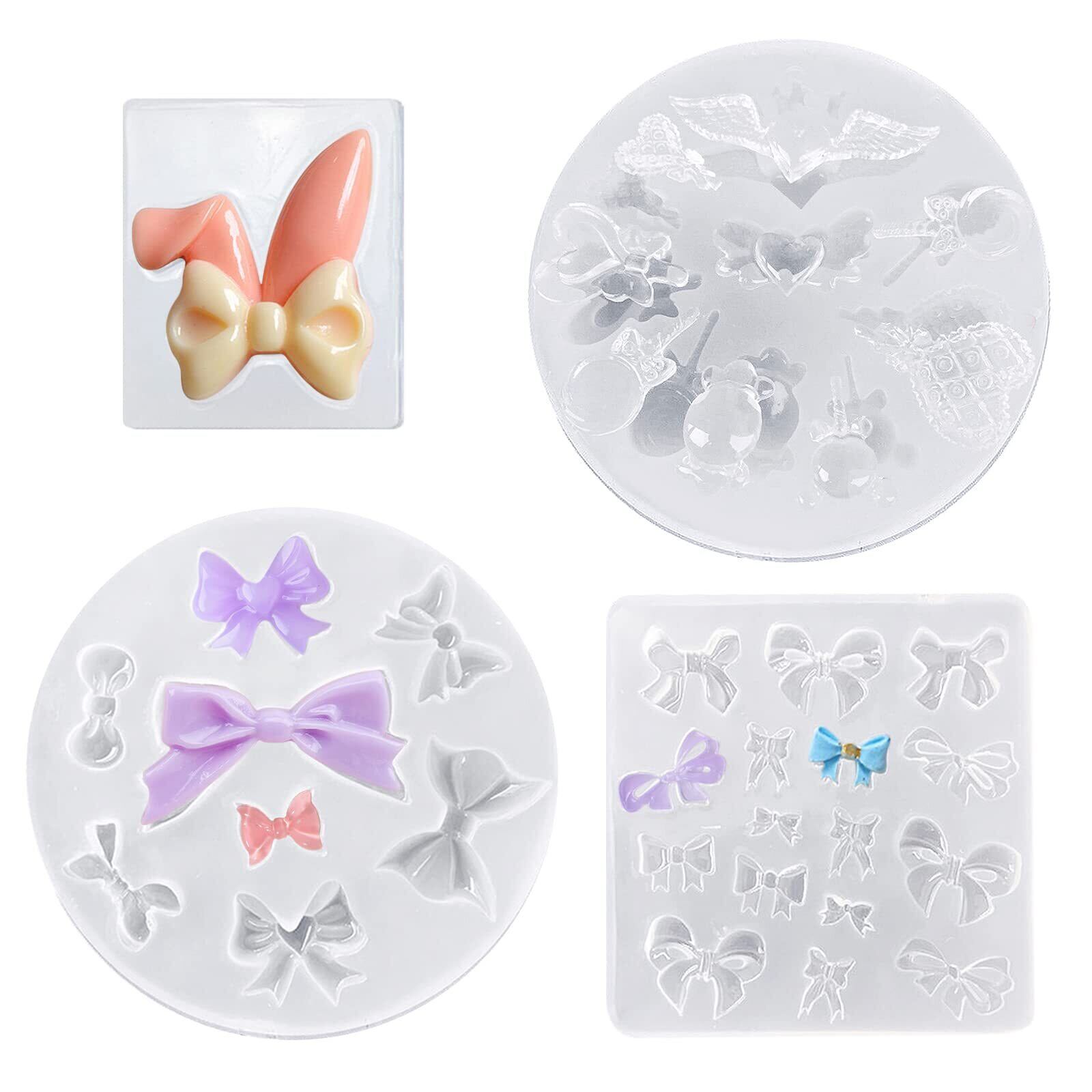 【2022最新】サムコス 4個セット リボン シリコンモールド リボン四角型 ちょう結び ウサ耳リボン キャンディー型 uvレジン 粘土 ソフトモールド DIY ペンダント イヤリング ヘアクリップ アクセサリー 樹脂工芸品 デコパーツ ハンドメイド素材 (R) | gsmshop
