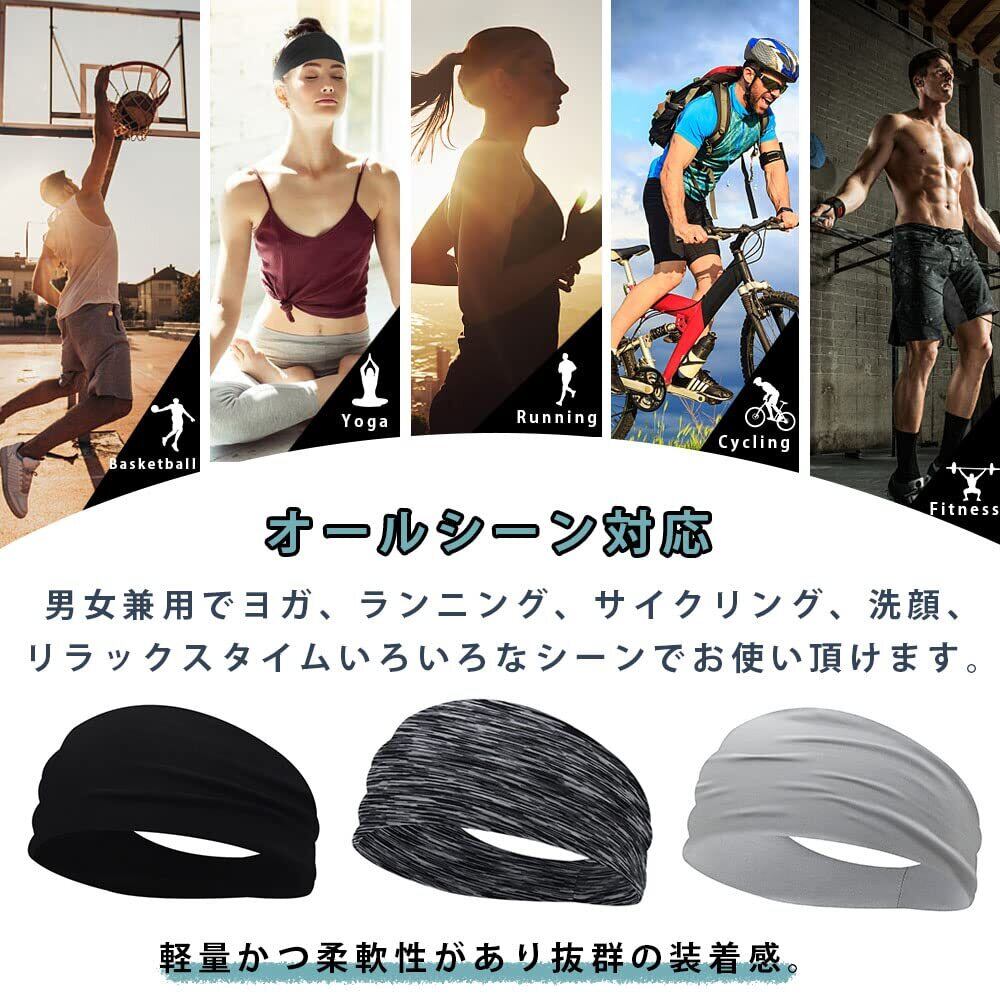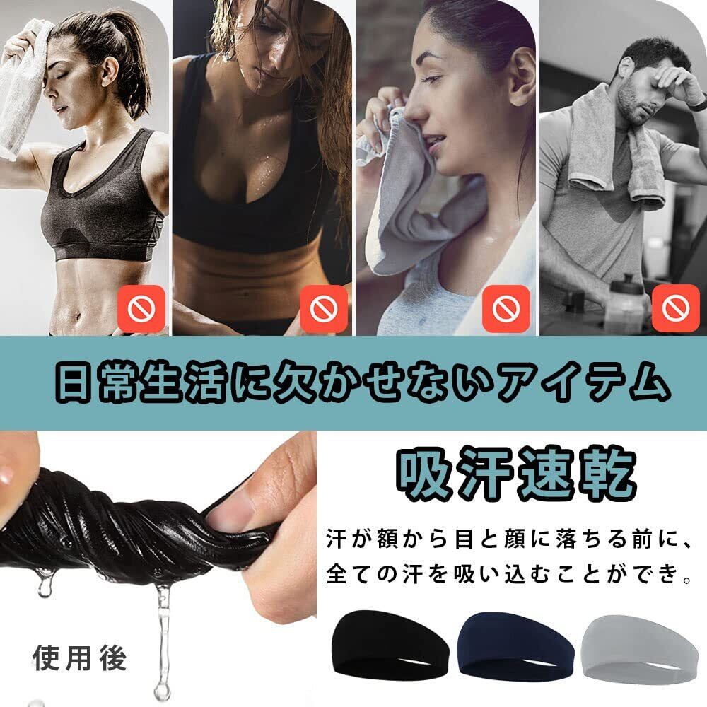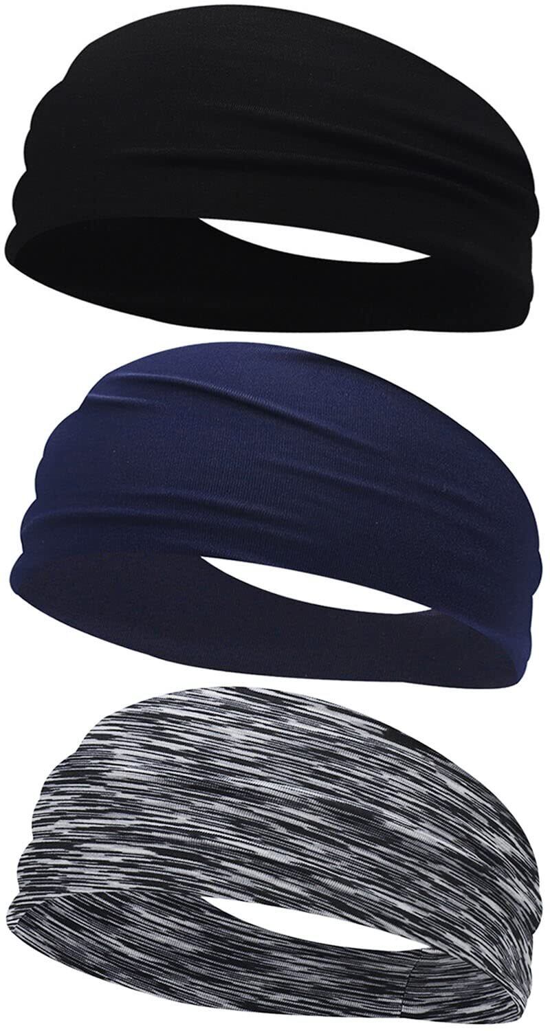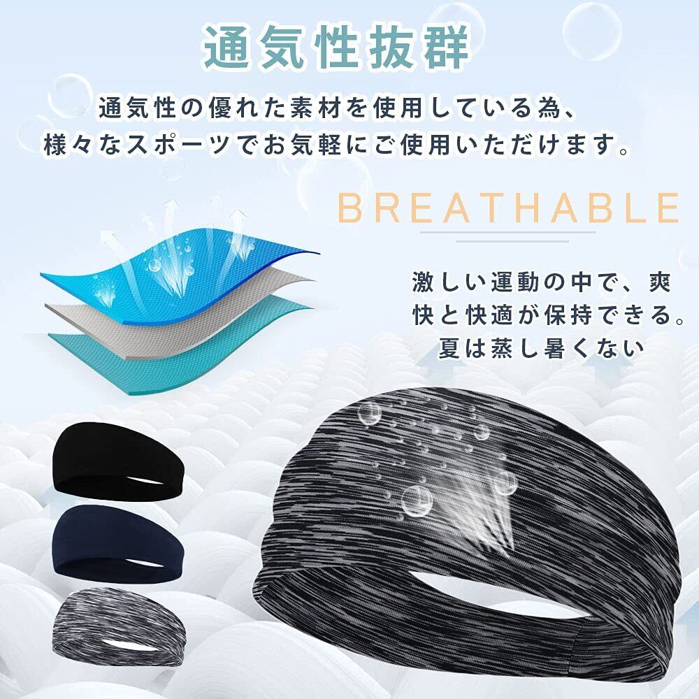 AOIIWER ヘッドバンド 汗止め ヘアバンド 3本セット スポーツターバン スポーツ用 薄型 メンズ 伸縮性 通気性あり 軽柔速乾 髪留めらかい ランニング ヨガ ジム 筋トレ アスレチック 洗顔用 男女兼用 (ブラック+ネイビー+ストライプグレー)