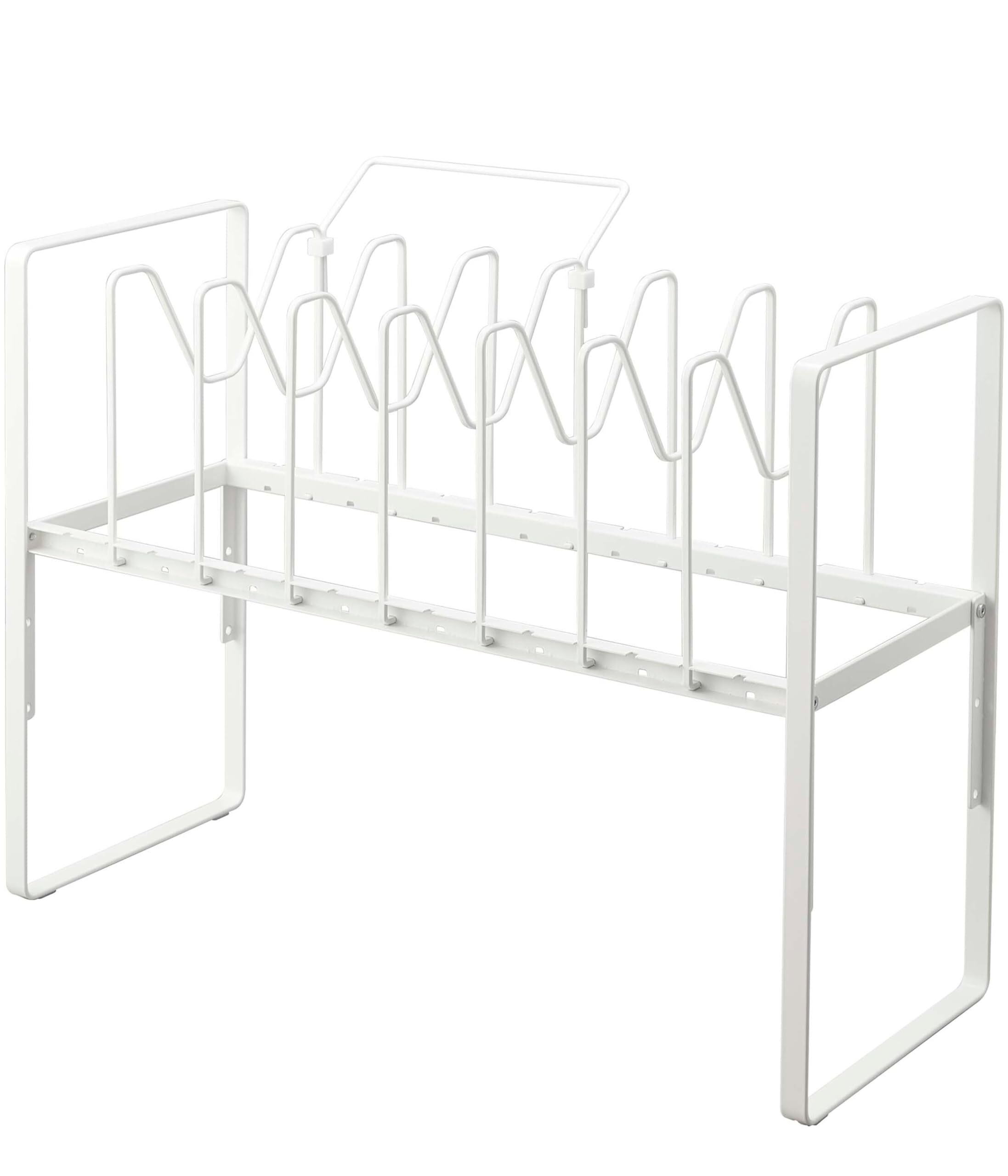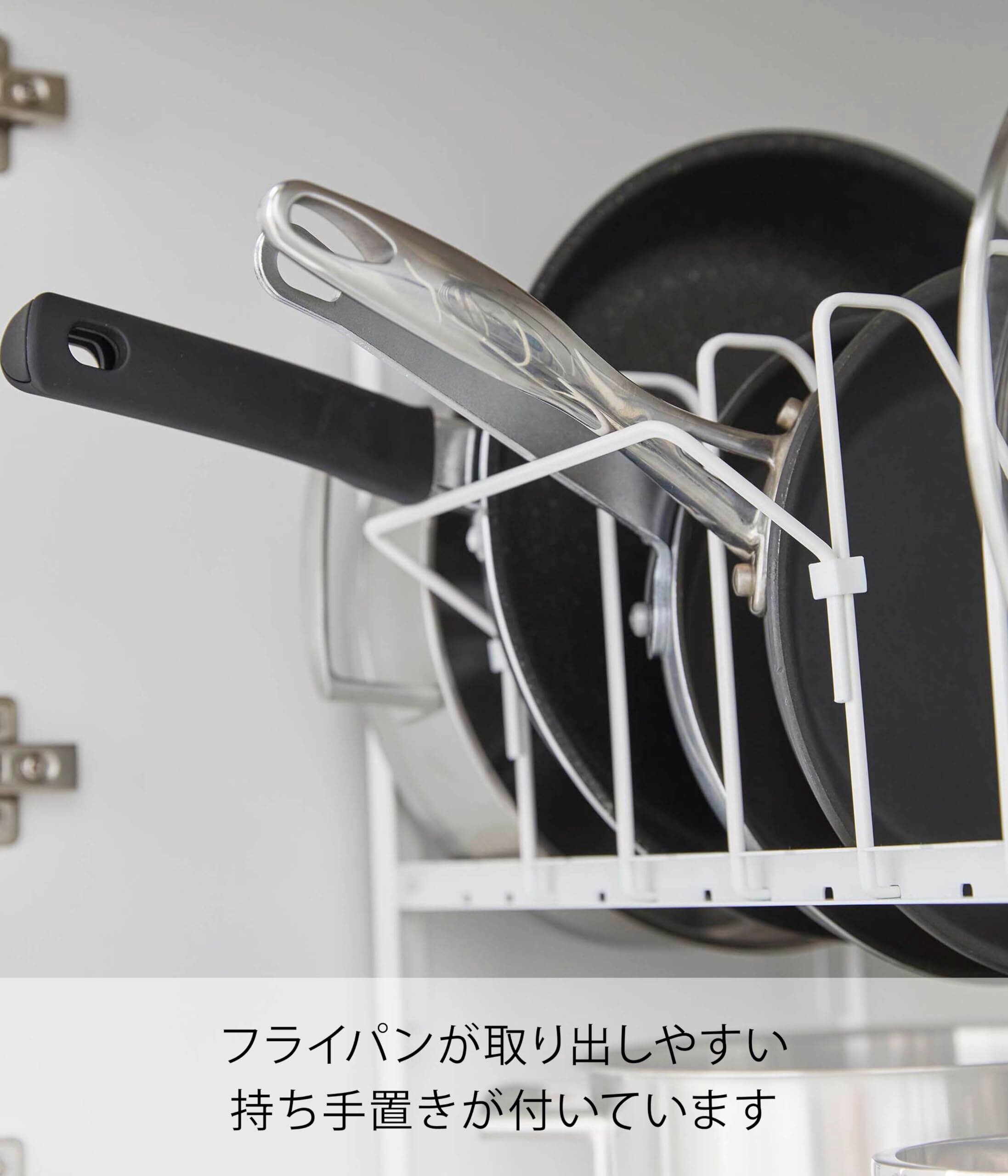 山崎実業(Yamazaki) シンク下 高さ調整 鍋蓋 & フライパン収納ラック 2段 ホワイト 約W52×D26×H38~41cm(持ち手置き含む) タワー tower フライパンラック 7本仕切りパーツ付き 手持ち置き付き 5593