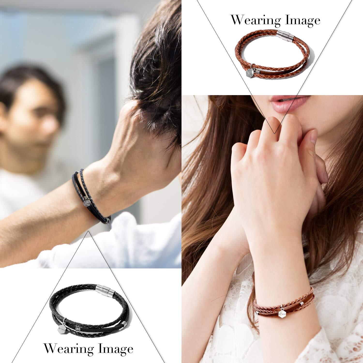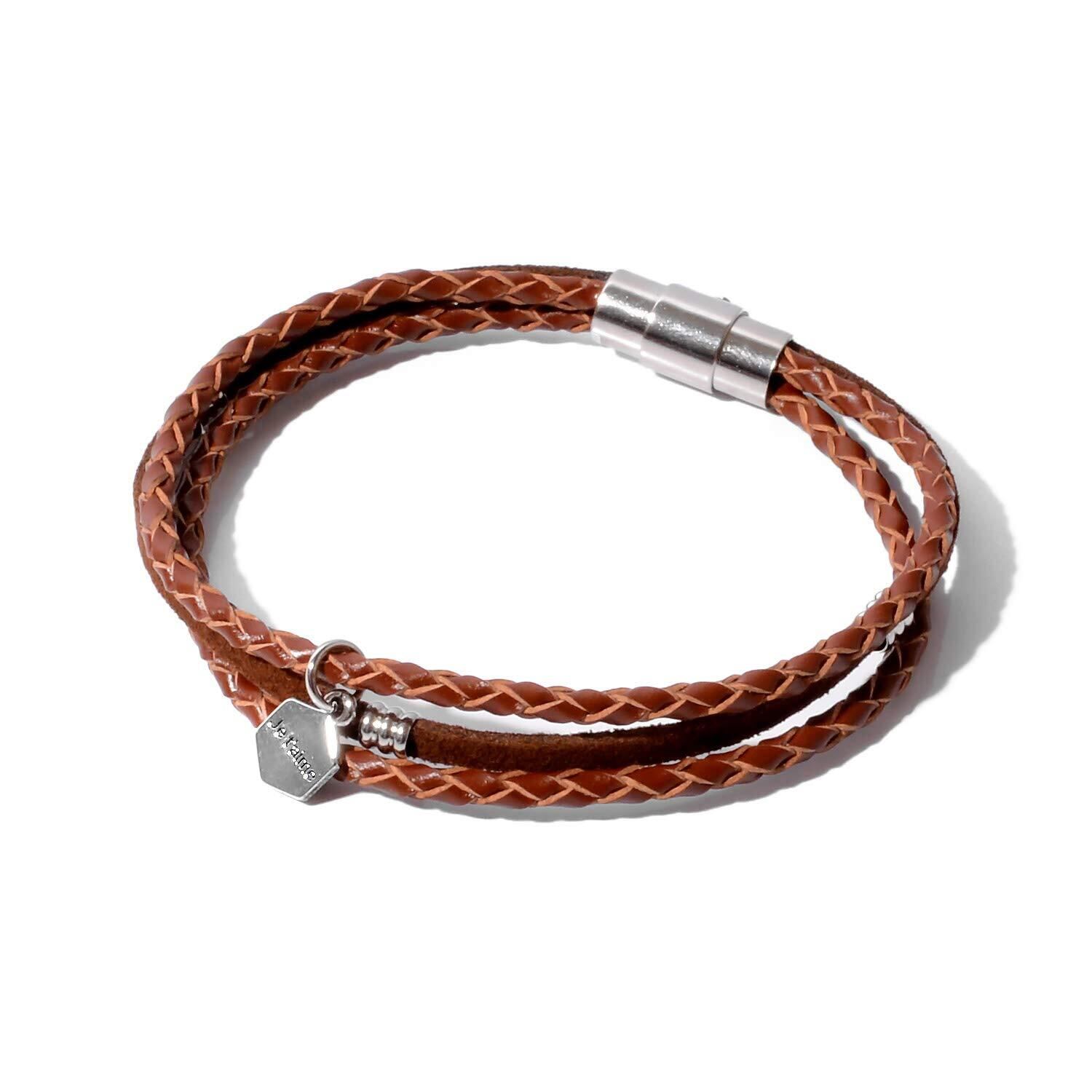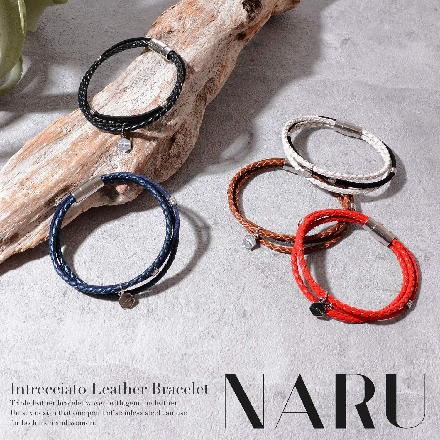 [ナル] 本革 編み込み レザー ブレスレット メンズ レディース ペア おそろい カップル 人気 革 ブランド 3連 茶 ブラウン
