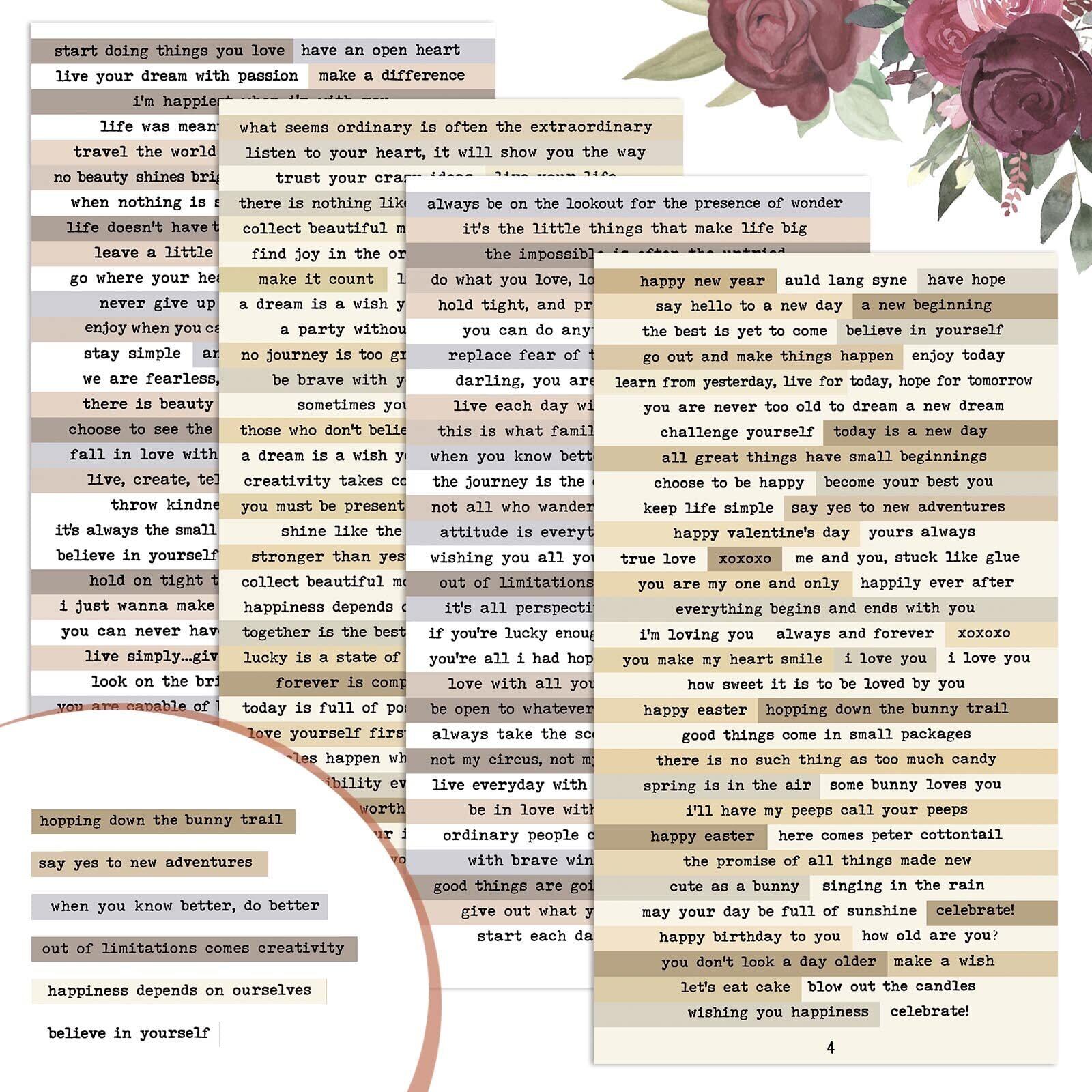 【ジャンクジャーナルに最適】: これらのポジティブな英語フレーズステッカーは高品質の素材で作られており、頑丈で耐久性があり、色あせしにくく、ステッカーは触り心地が良く、スクラップブック、ノートブック、アルバムに長期間留まります。