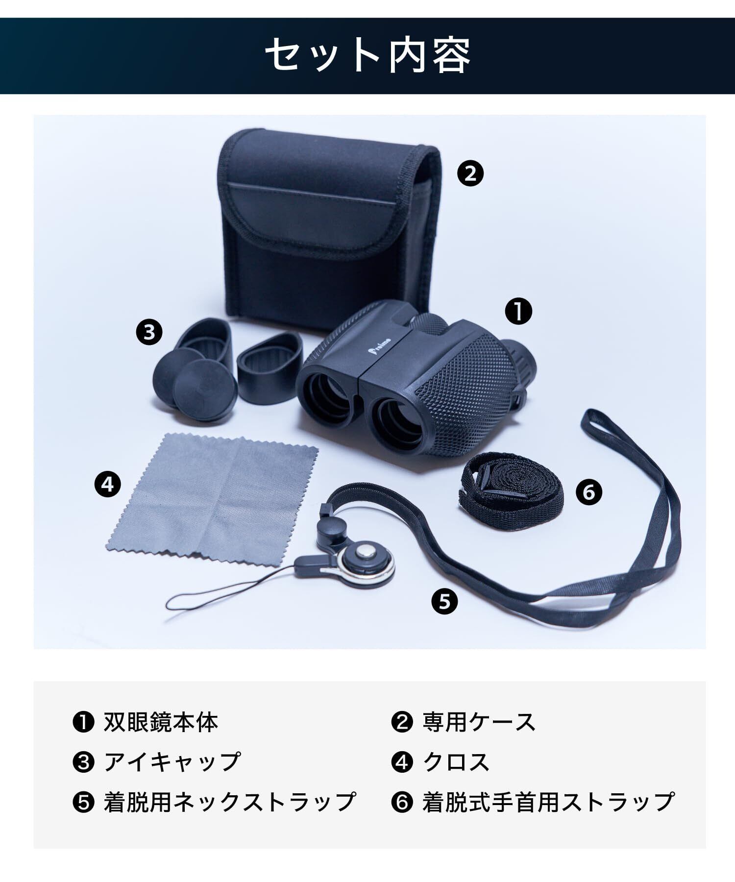 Preime双眼鏡のこだわり:倍率は10倍で、ほとんどの会場、ドームでご満足頂けます。対物レンズ有効径は25㎜、ひとみ径は2.5であり、肉眼でみる状態とほとんど変わらない明るさです。多層膜コーティングを採用しております。重さも長時間利用を考え250g以下で、着脱式のネックストラップを付属させました。️Preime双眼鏡は本気で皆様のコンサートの満足度を上げるために考え抜かれた双眼鏡です。