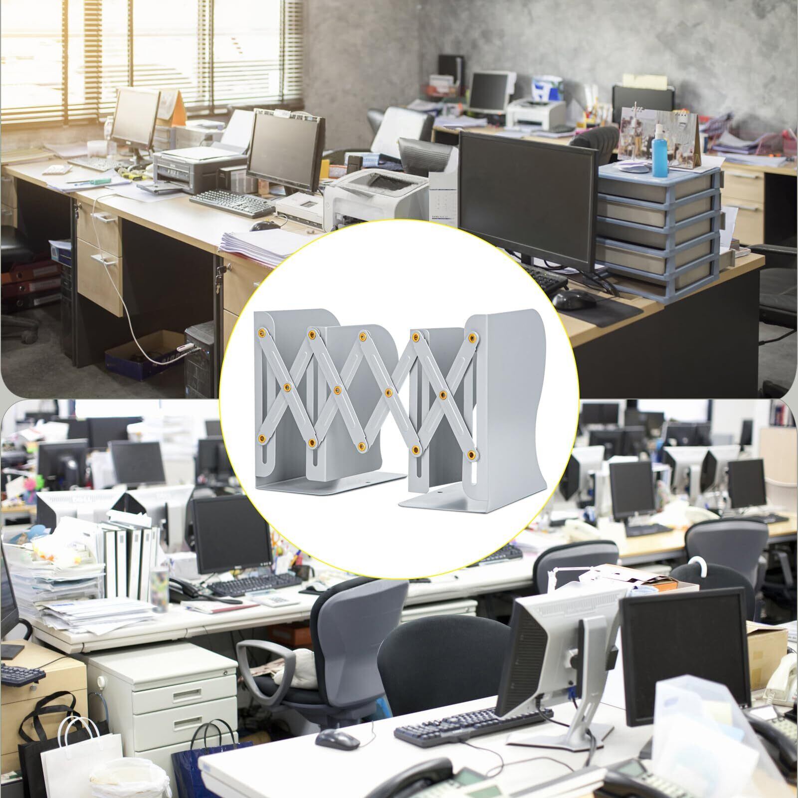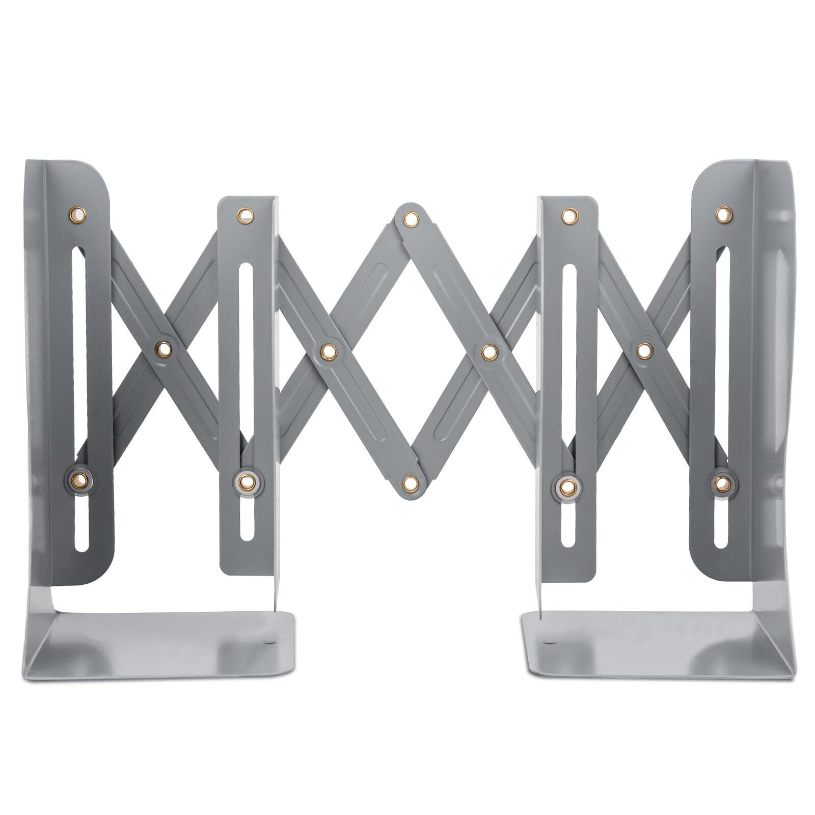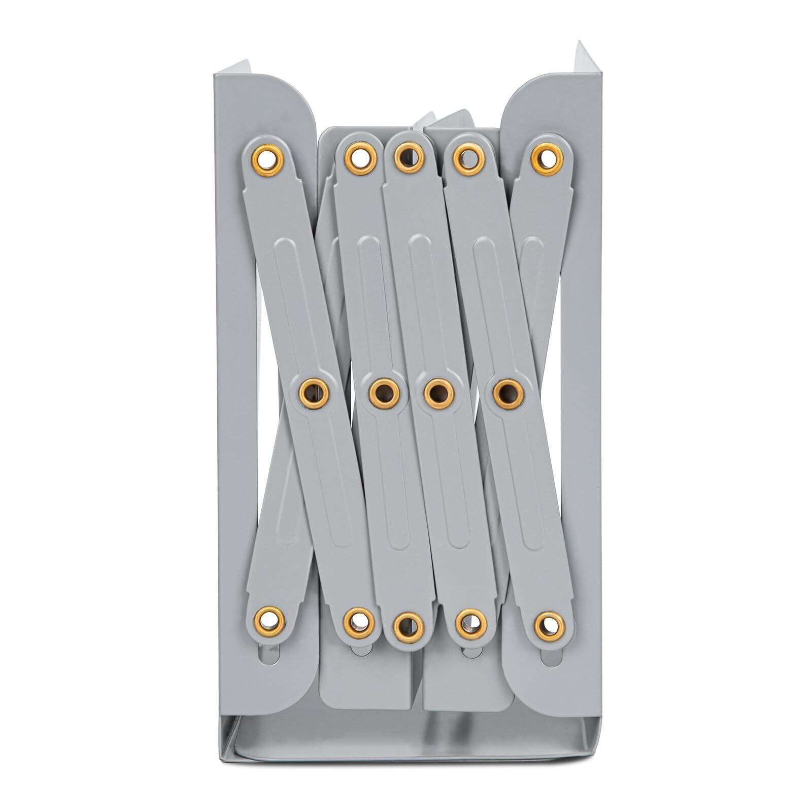 【在庫処分】ALIOBC 本立て 伸縮自在 ブックエンド 書棚 本棚 ブックスタンド デスク整理 金属製 卓上収納 雑誌 書類 新聞ファイル ひきこみ式の棚 事務用品 文房具 学習 書斎 子供部屋 オフィス グレー | gsmshop