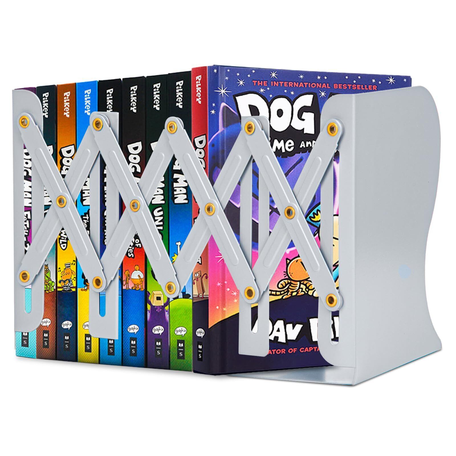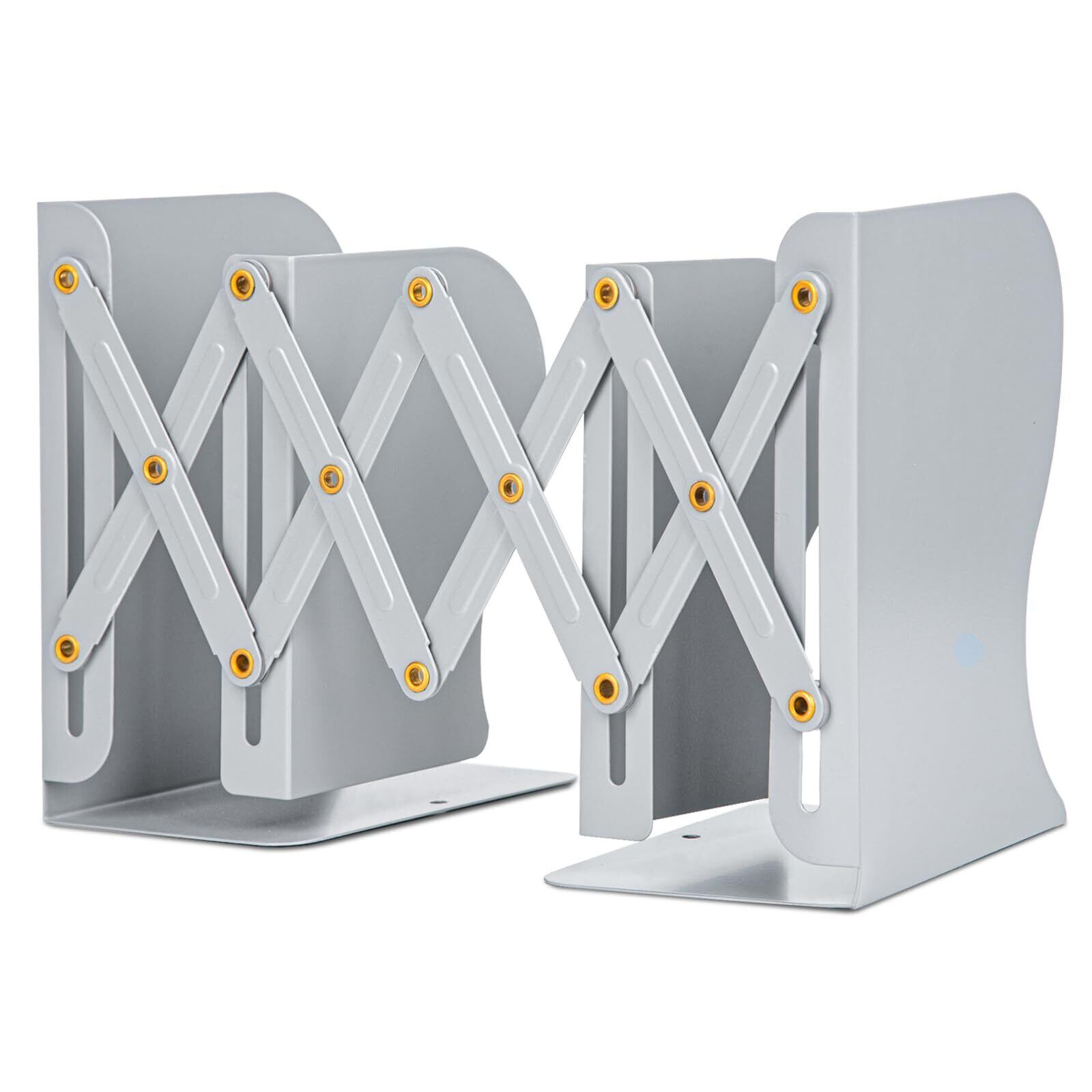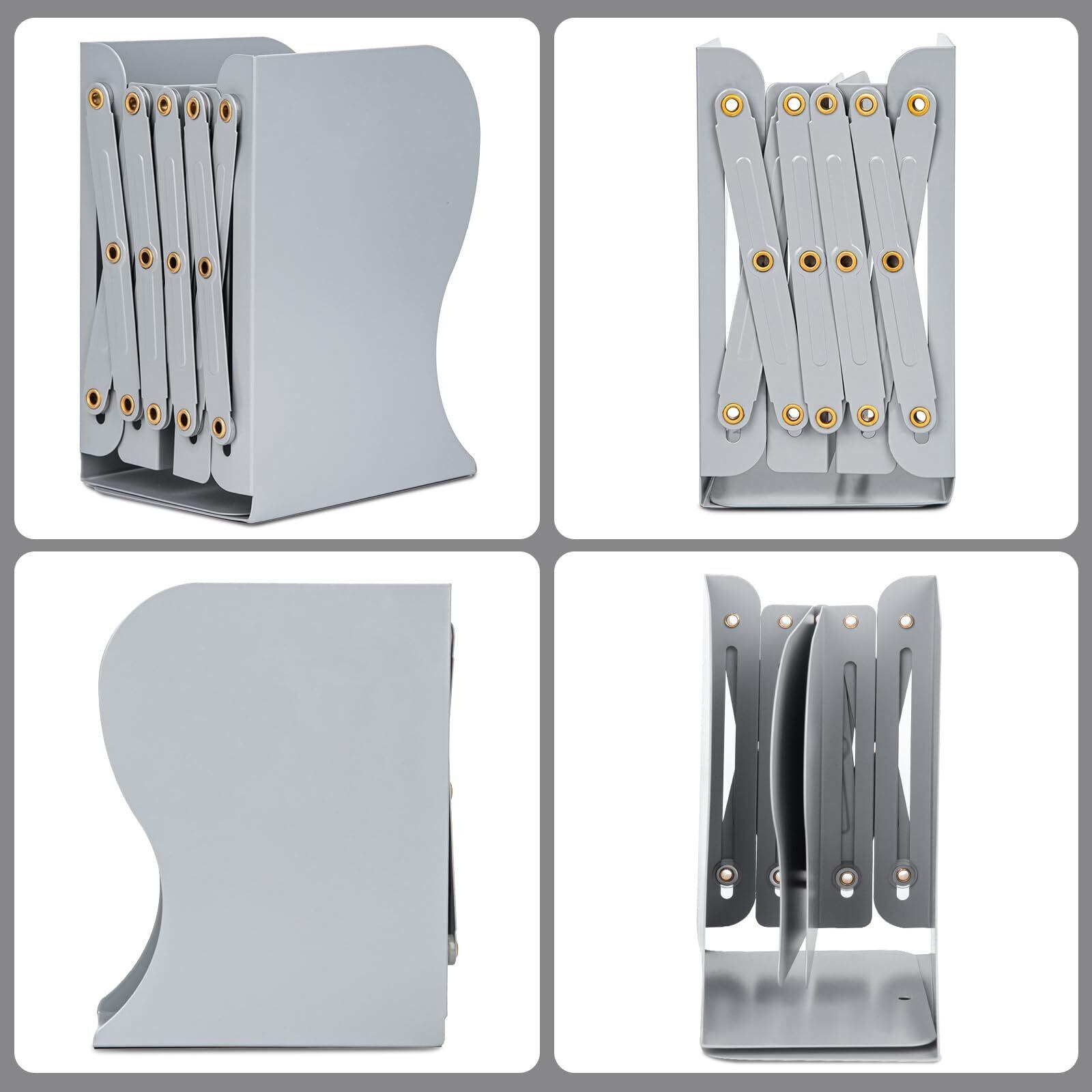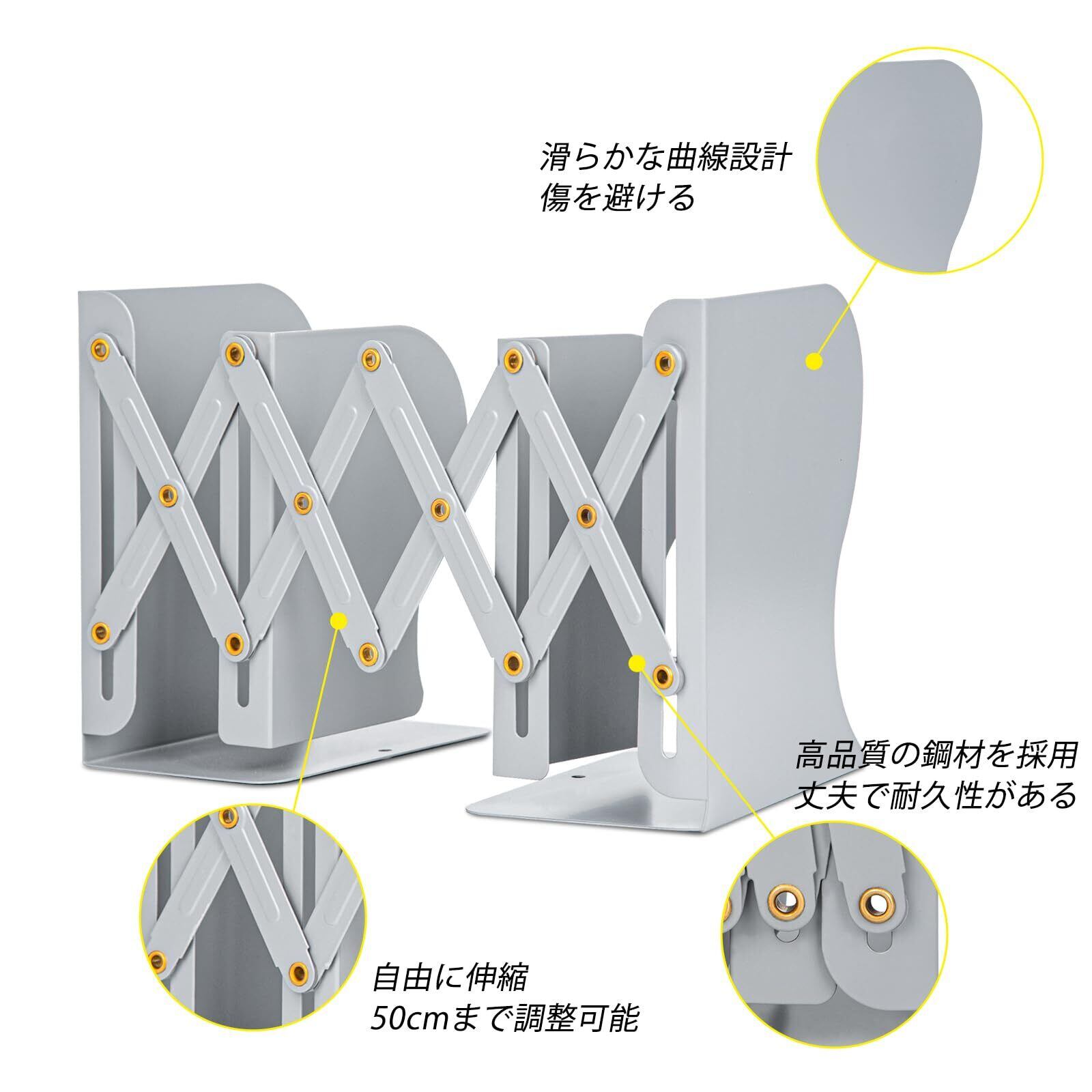 ALIOBC 本立て 伸縮自在 ブックエンド 書棚 本棚 ブックスタンド デスク整理 金属製 卓上収納 雑誌 書類 新聞ファイル ひきこみ式の棚 事務用品 文房具 学習 書斎 子供部屋 オフィス グレー