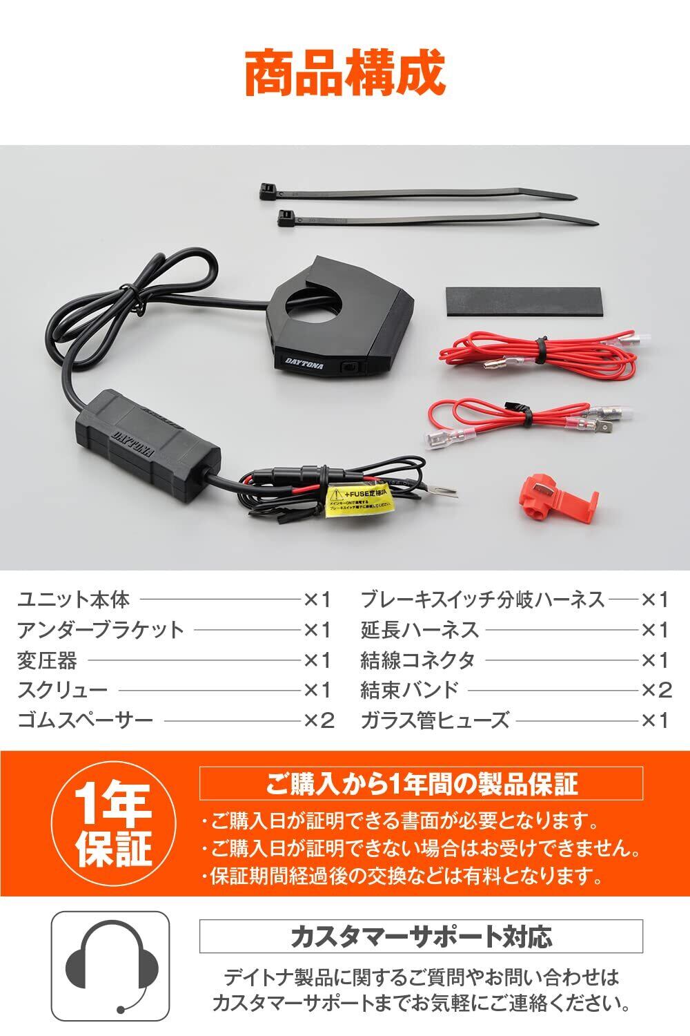 【在庫セール】デイトナ(Daytona) バイク用 USB電源 USB-A 24W iPhone/Android対応 ブレーキスイッチ接続 メインキー連動 取付幅13.5mm スレンダーUSB 2ポート 98438 | gsmshop