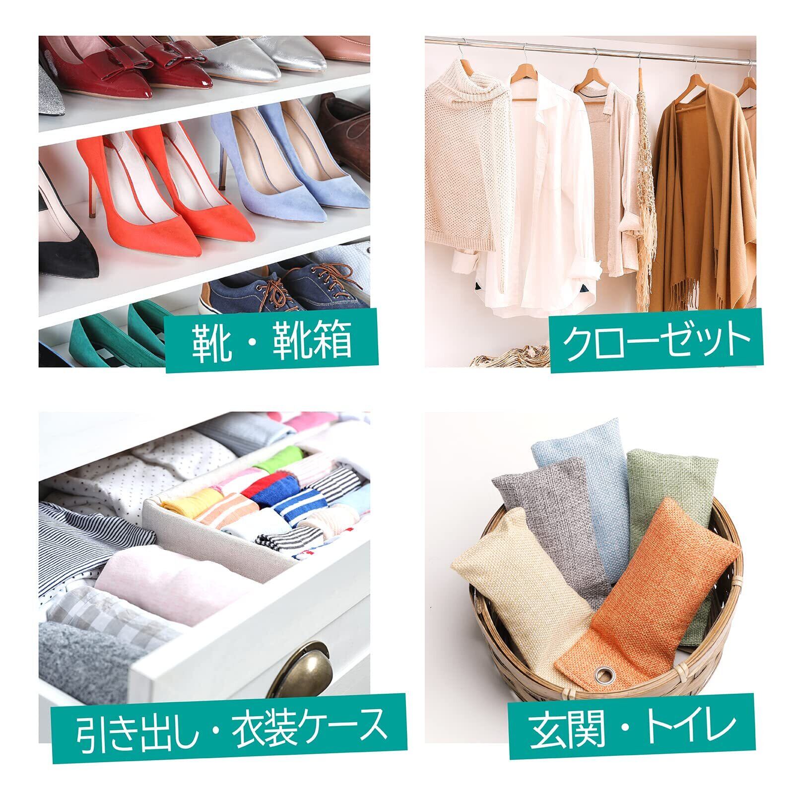 【天然の竹炭が作るクリアな空気】竹炭のフィルター効果で汗や湿気を除湿。イヤな臭いを消臭、脱臭してくれます。靴のにおい消しや湿気とり、洋服についてしまったタバコや加齢臭の軽減にも。