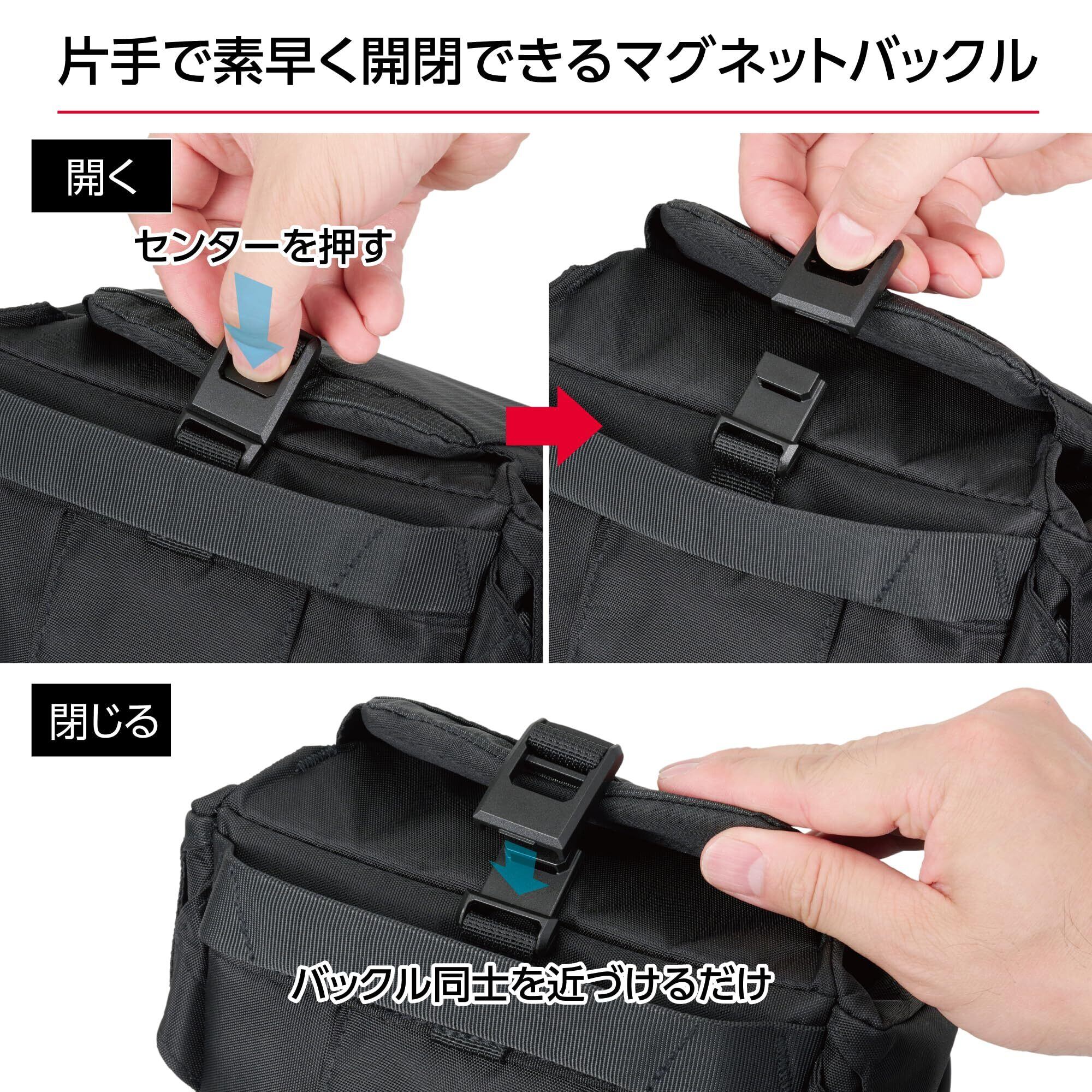 マグネットバックルと折りたたみ構造のフラップにより素早く安全に機材を取り出すことができるトップローディングタイプ。
